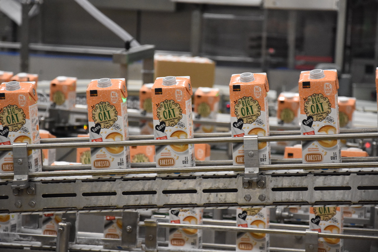 In Suhr werden Haferflocken aus Schweizer Bio-Produktion in Big-Bags angeliefert, anschliessend mit Wasser vermischt und zu einem Brei vermahlen. Es folgt ein enzymatischer Prozess, bei dem die enthaltene Stärke in Zucker gespalten wird, was für einen süsseren Geschmack sorgt. Der Brei gelangt als nächstes in eine spezialisierte Maschine zum Dekantieren, bei dem feste und flüssige Stoffe getrennt werden. Es resultiert einerseits der Haferdrink, der mit der Zugabe von Sonnenblumenöl und einer thermischen Behandlung (UHT) den letzten Schliff bekommt. Als Nebenprodukt entstehen andererseits Haferfasern, für die es im Moment noch keine weitere Verwendung als Lebensmittel gebe. «Es laufen dazu aber Projekte und verschiedene Möglichkeiten werden geprüft», versicherte Daniel Peters, der bei Emmi die Entwicklung Milchprodukte leitet.