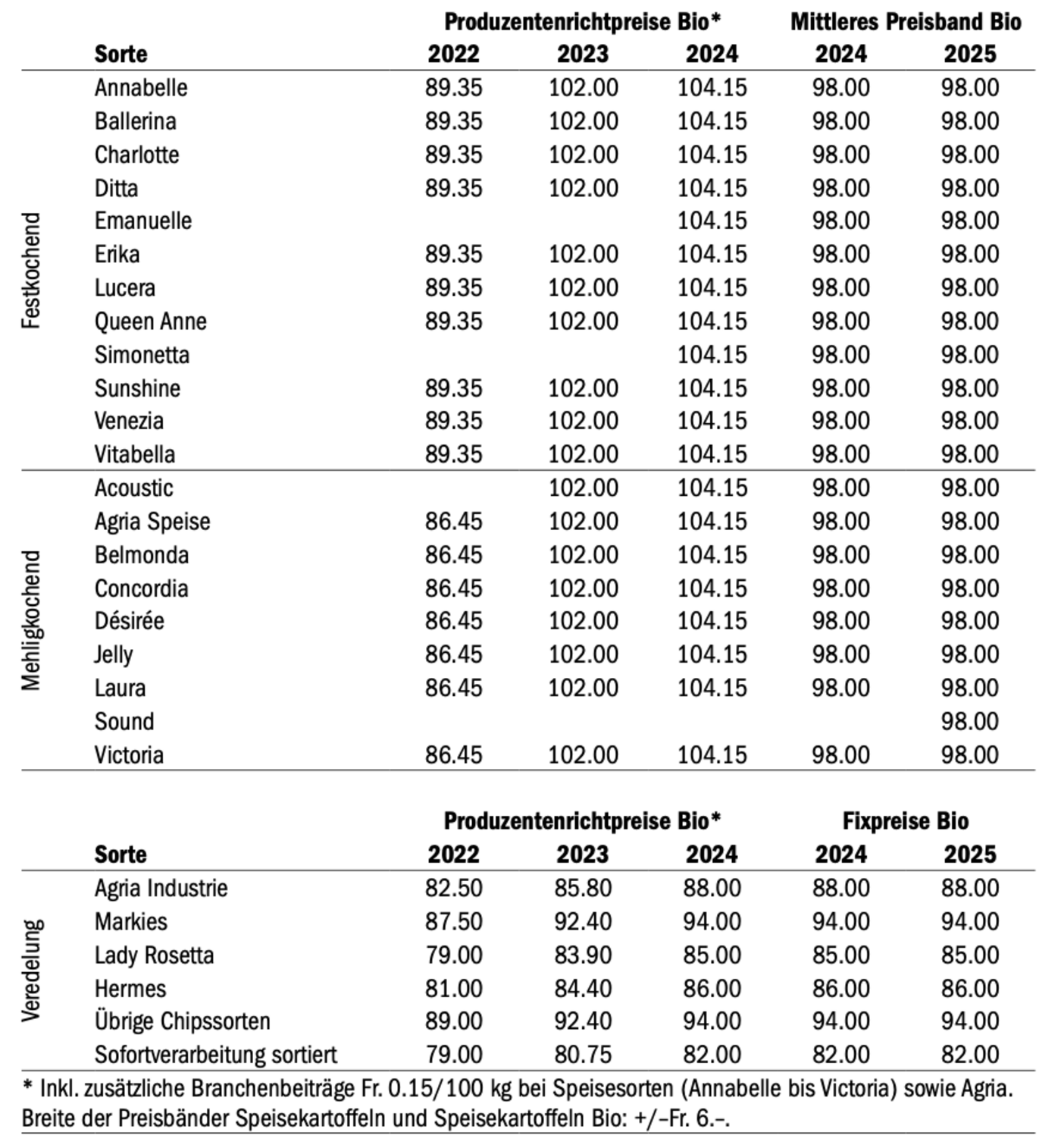 Vertreter von Produktion, Handel und Industrie hätten in den letzten Monaten intensive Verhandlungen zu den Übernahmebedingungen sowie zu den Preisbändern und Fixpreisen für die anstehende Kartoffelernte geführt, teilt Swisspatat mit. Nun steht das Ergebnis fest, auf das sich die Branche geeinigt hat. Die Preisbänder und Fixpreise bleiben unverändert wie im Vorjahr. Hingegen haben sich die Branchenakteure auf eine…