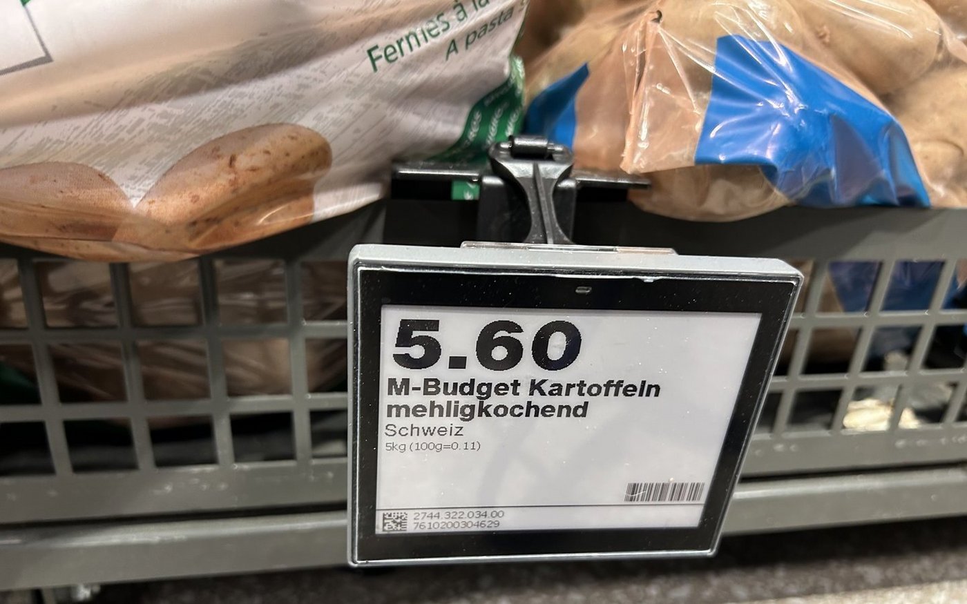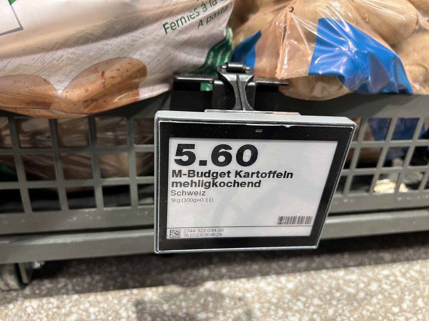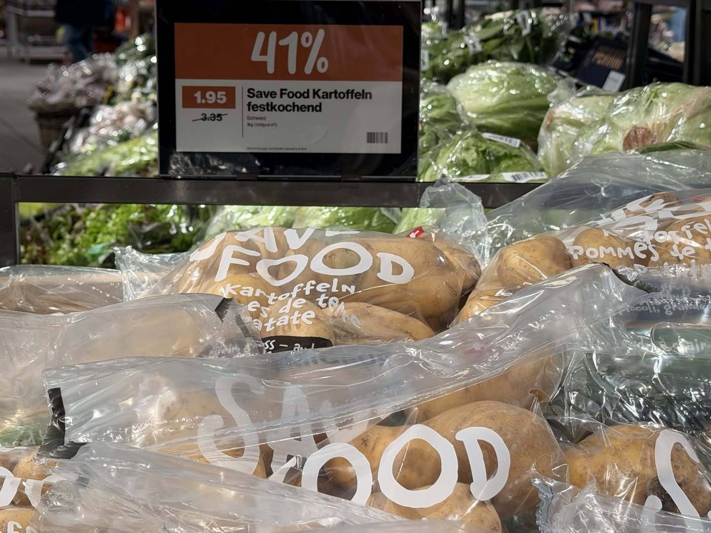 Die M-Budget-Kartoffeln Schweiz, festkochend, ungewaschen, kosten 11 Rappen/100 g – also gleich viel wie die «Save Food»-Kartoffeln –, ausser, dass die «Save Food»-Kartoffeln den Vorteil haben, dass sie gewaschen sind.