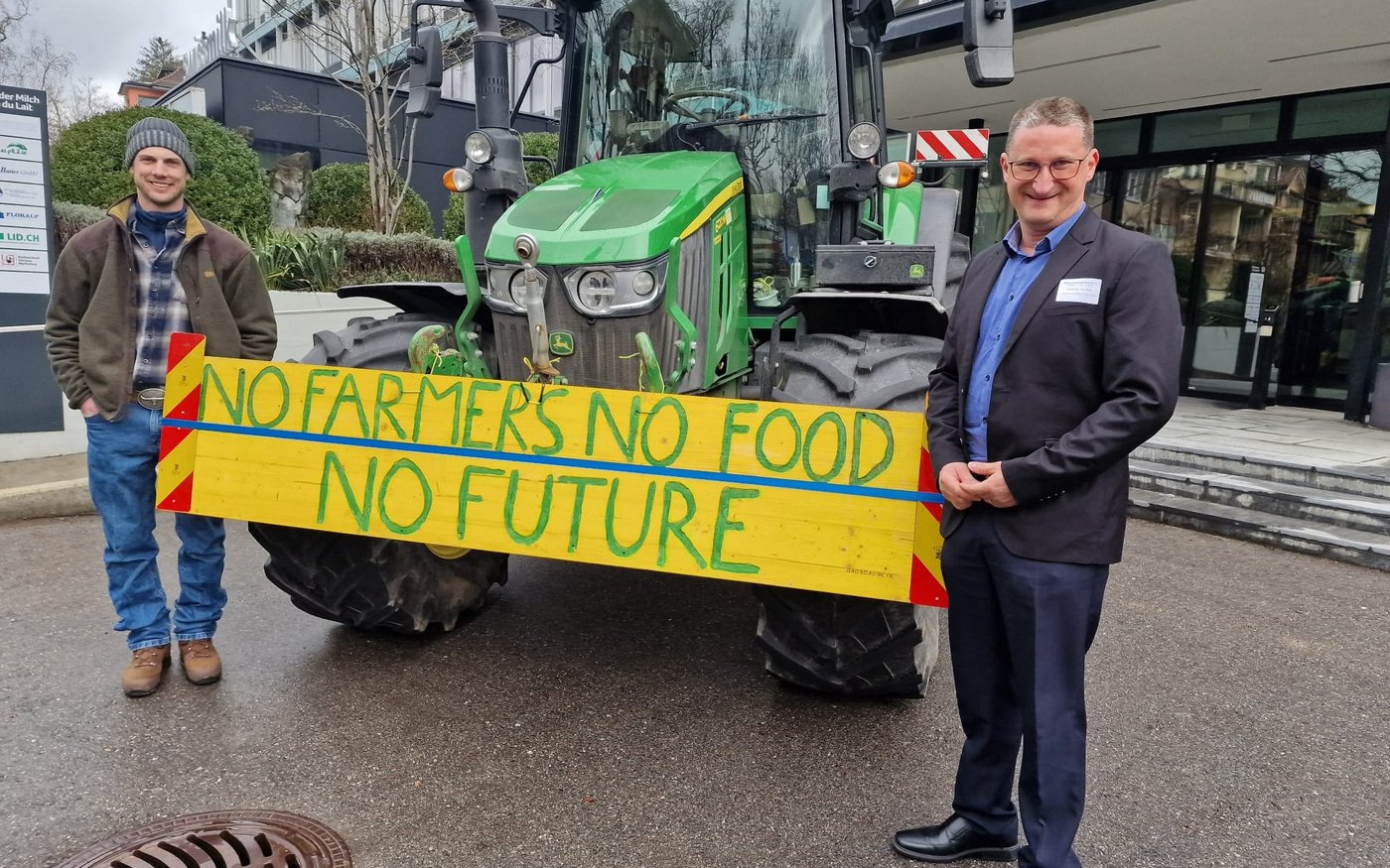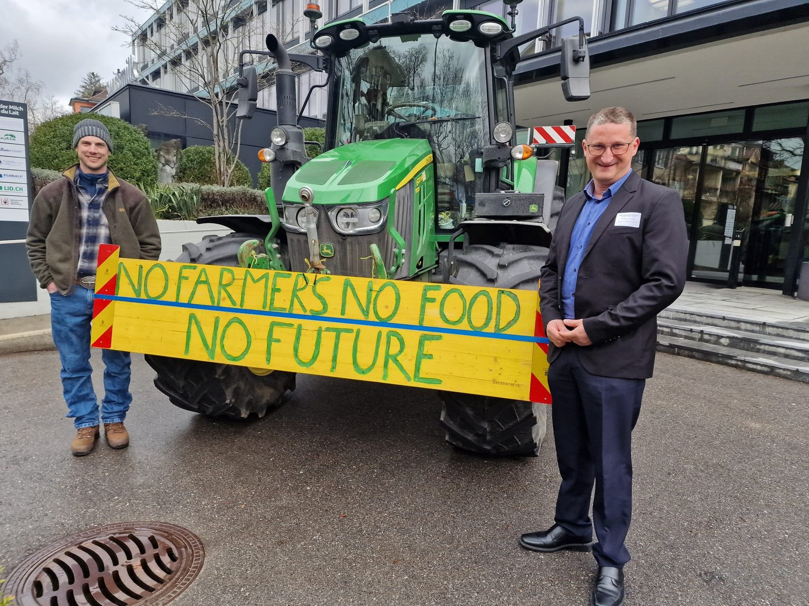 Der Luzerner hat seinen modernen John-Deere-Traktor gut sichtbar vor dem Bürogebäude parkiert. «Wir brauchen grössere Maschinen, weil wir wachsen müssen, um am Ende noch gleich viel verdienen zu können», kommentiert er sein Gefährt. Vorne prangt ein Plakat mit der Aufschrift «No farmers, no food, no future» – «keine Bauern, kein Essen, keine Zukunft». Er habe seine Botschaft bewusst auf Englisch formuliert, sagt Roman Hodel. «Damit will ich die Jungen abholen, denn ohne sie nützt alles nichts». Generell müsse die Bevölkerung besser verstehen, wie wichtig die Landwirtschaft sei – im Allgemeinen und im Inland im Speziellen. «Vielleicht ist dieser Zug dann irgendwann abgefahren», gibt Hodel bezüglich Importmöglichkeit und der schwierigen Lage ausländischer Berufskollegen zu bedenken.