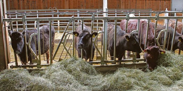 Zufrieden kauend stehen die Kühe von Peter Hunkeler an diesem kalten, verschneiten Morgen am Fressgitter und fressen Heu. Kühe, Kälber, der Muni, alle strahlen sie eine Gemütlichkeit aus. Einzig die Schutzvorrichtungen an ihren spitzen Hörnern zeigt, dass sie doch auch Temperament haben können. Doch was diese Rasse am liebsten mag ist gutes Futter, Gemütlichkeit und Ruhe. Hunkeler hält nämlich die seltenen Wagyus,…