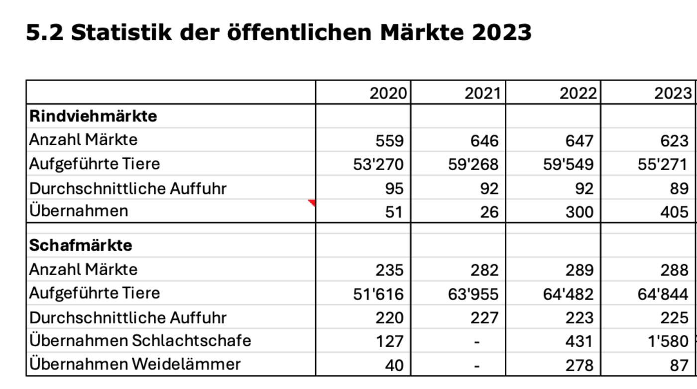 Im vergangenen Jahr wurden an den öffentlichen Rindviehmärkten 55'271 Tiere gehandelt. Durchgeführt wurden 623 Märkte und im Schnitt wurden pro Marktplatz 89 Tiere aufgeführt. Was auf den ersten Blick stolze Zahlen sind, bedeutet dennoch sinkende Tendenzen. So ist die Anzahl Märkte gegenüber dem Vorjahr um 24 gesunken, die Anzahl Tiere um 4278 Stück. Das ergibt eine Abnahme der Auffuhren von 7,2 %. Dennoch sind die…