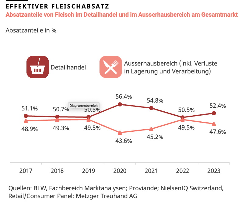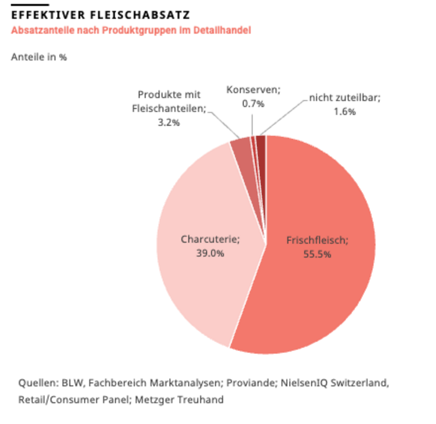 Im vergangenen Jahr wurden in der Schweiz insgesamt 436 400 Tonnen Fleisch konsumiert. Der Fleischabsatz im Detailhandel macht dabei gut die Hälfte aus und blieb im Vergleich zum Vorjahr stabil. Dies ist dem neusten Fleischmarktbericht des Bundes zu entnehmen. Dabei sind 55,5 % des im Detailhandel verkauften Fleisches frisch und 39 % werden der Charcuterie zugerechnet. Produkte mit Fleischanteil wie etwa Pizza und…