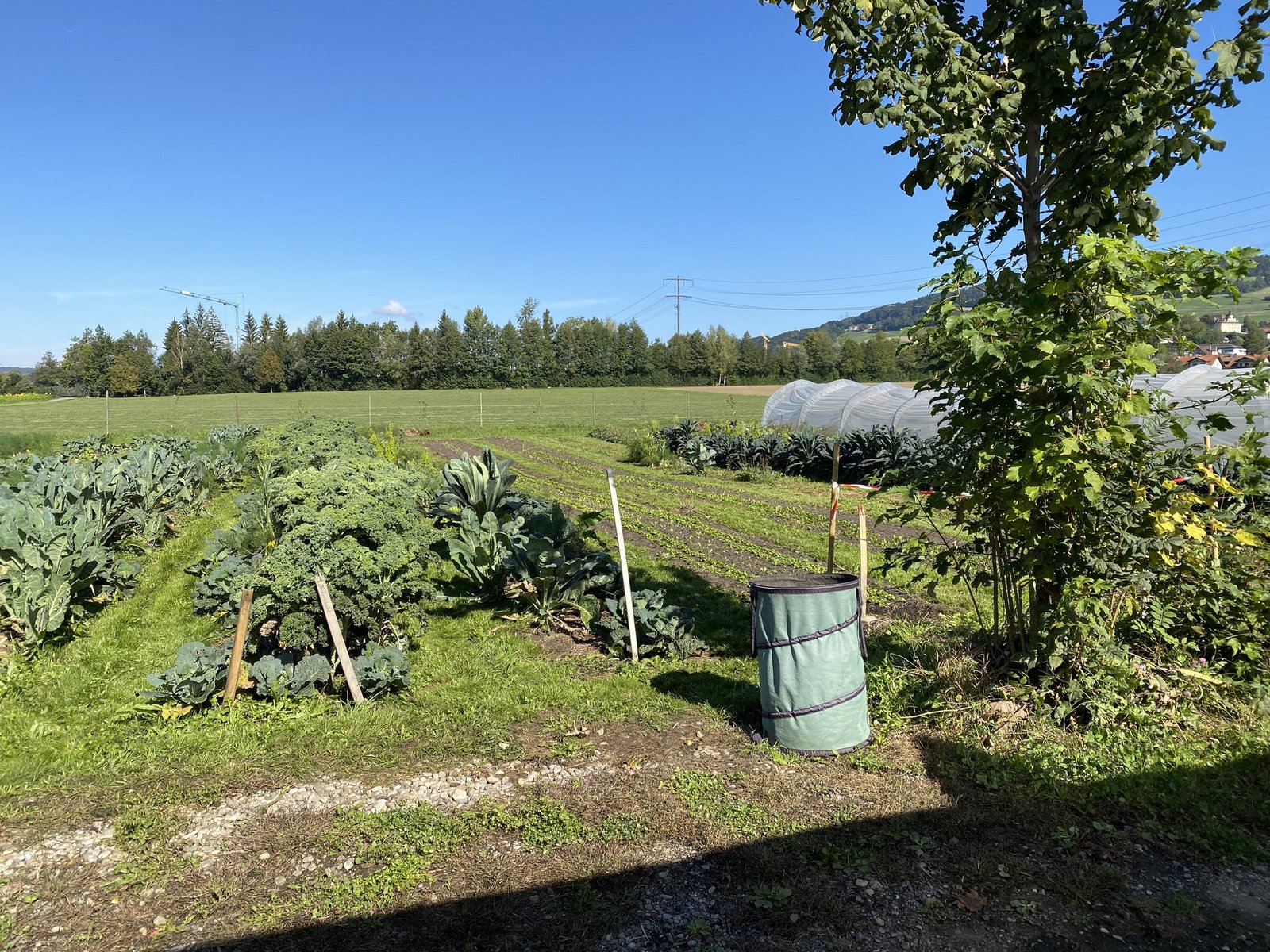 Mit dem Flächen-Abo-Konzept trägt die Kundschaft auch einen Teil des Anbaurisikos. «Dank der die grossen Vielfalt auf der Fläche werden aber immer einige Gemüsearten die verschiedenen Wetterbedingungen überstehen und gedeihen», gibt Dario Heller zu bedenken. Um dem grössten Schädlingsdruck im Sommer auszuweichen, nutzen die Luzerner die Flexibilität ihres Direktvermarktungssystems aus und bauen z. B. Blumenkohl bereits früh im Jahr an, um diese Gemüse dann im Sommer auszulassen. Dies mit der Aufforderung an die Kundschaft, den Blumenkohl einzufrieren oder einzumachen, um trotzdem in den warmen Monaten davon profitieren zu können. Daneben gibt es Obst und Beeren von den Bäumen und Sträuchern, die Hellers inspiriert von der Permakultur zwischen die Beete gepflanzt haben. «Dafür garantieren wir aber nicht», so Dario Heller, «das setzt uns nicht unter Druck, gegen Krankheiten oder Schädlinge zu spritzen.»