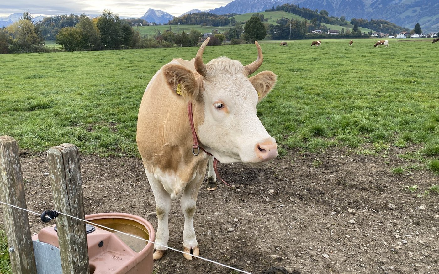 Mit Hornkühen auf der Weide