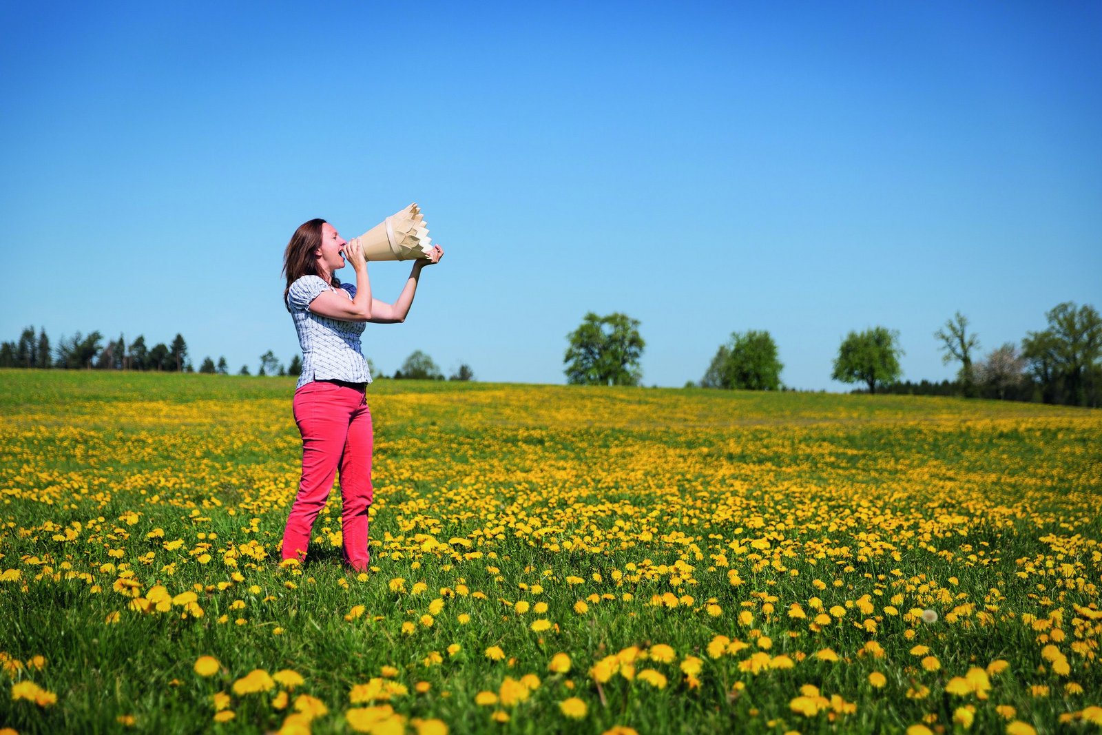 Eine grosse Wiese voller leuchtend gelbem Löwenzahn. Ausser Vogelgezwitscher und einem weit entfernten Rasenmäher ist nichts zu hören. Es ist Corona-ruhig. Oder ist es hier immer so? Wie aus dem Nichts durchbricht ein Juchzer die bedächtige Atmosphäre. Er kommt aus der Kehle von Sonja Morgenegg, die mit ihrem handgeschnitzten Jodeltrichter auf der Wiese steht. Und plötzlich scheint ein Hauch wilder Unbeschwertheit…