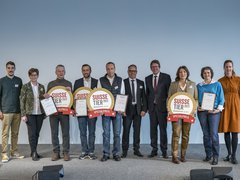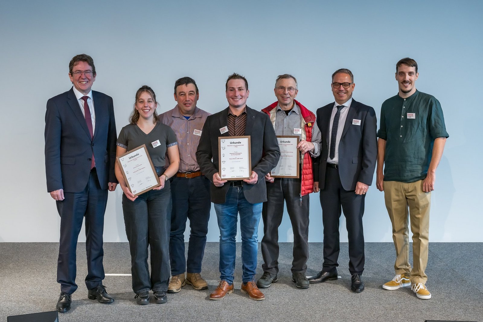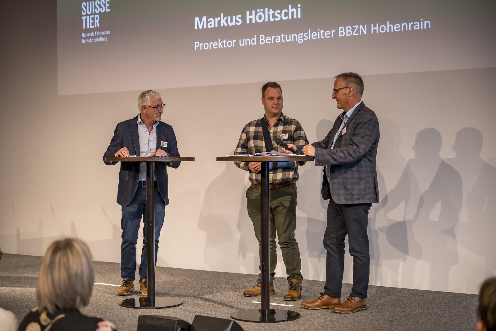 Bereits die Eröffnung der Suisse Tier 2023 war für die Verantwortlichen eine runde Angelegenheit. Nach Geleitworten von Messebeirats-Präsident Meinrad Pfister tauschte sich Markus Höltschi, Prorektor des BBZN Hohenrain, mit den Landwirten Thomas und Marc Grüter vom Sonnhaldenhof in St. Urban LU zum Messe-Thema Effizienz aus. Im Anschluss verlieh die Schweizer Agrarmedien AG, zu der die BauernZeitung und das Fachmagazin «die grüne» gehören, drei Spezialpreise für herausragende gewerbliche Neuheiten und zeichnete drei findige bäuerliche Tüftler für ihre Innovationen aus.