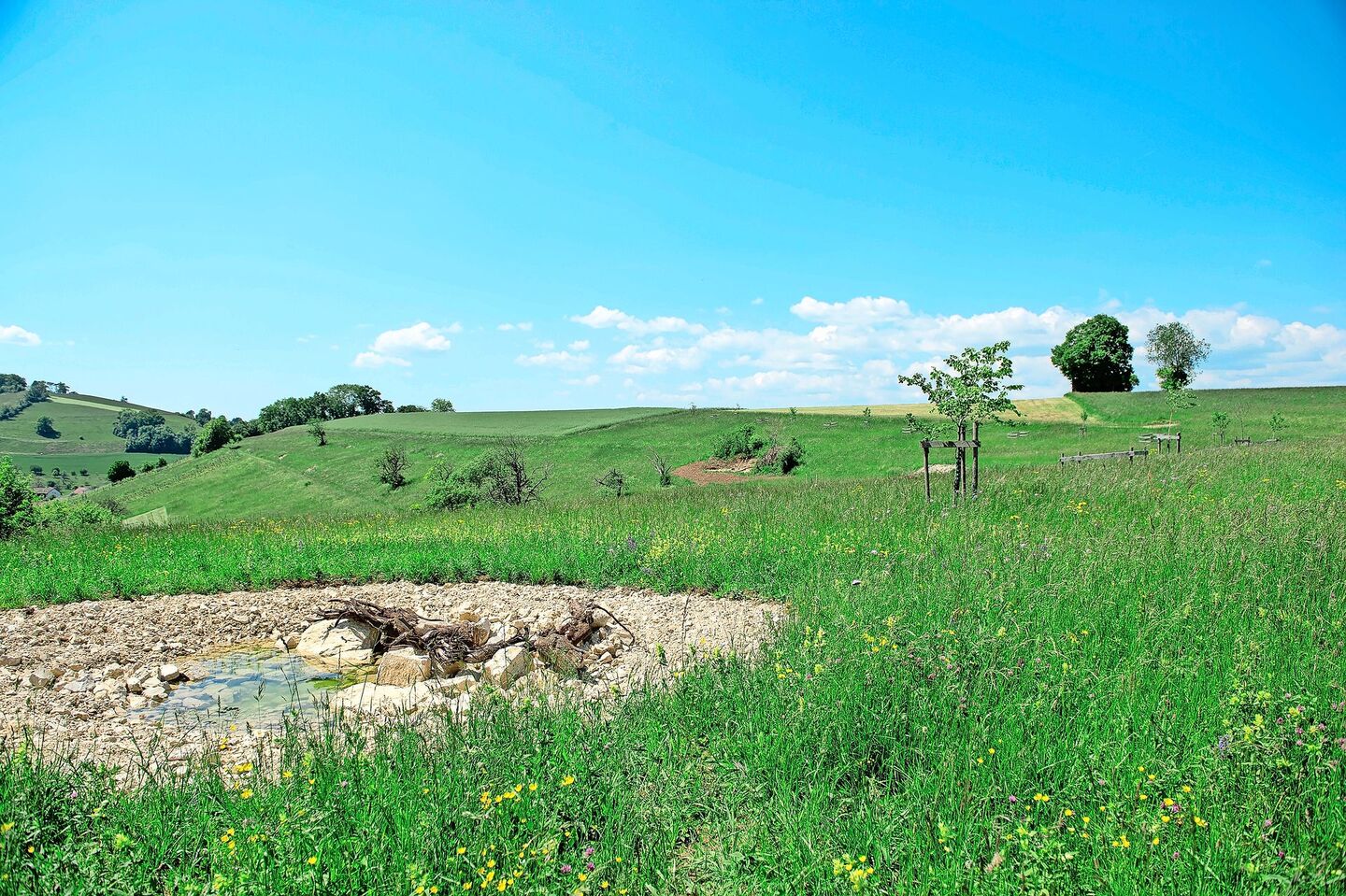 Lukas Erne, der Gemeindeammann, erklärte, dass die Idee ursprünglich lediglich war, die Hochstammbäume zu fördern. Im Rahmen einer Begehung mit Medienschaffenden, Vertreter(innen) des Kantons, Stiftungen und des Jurapark Aargau wurde das Projekt vorgestellt. Gesamthaft wurden 44 Weiher, 1,5 km Hecken, an die 100 Hochstammbäume und 50 Kleinstrukturen angelegt.