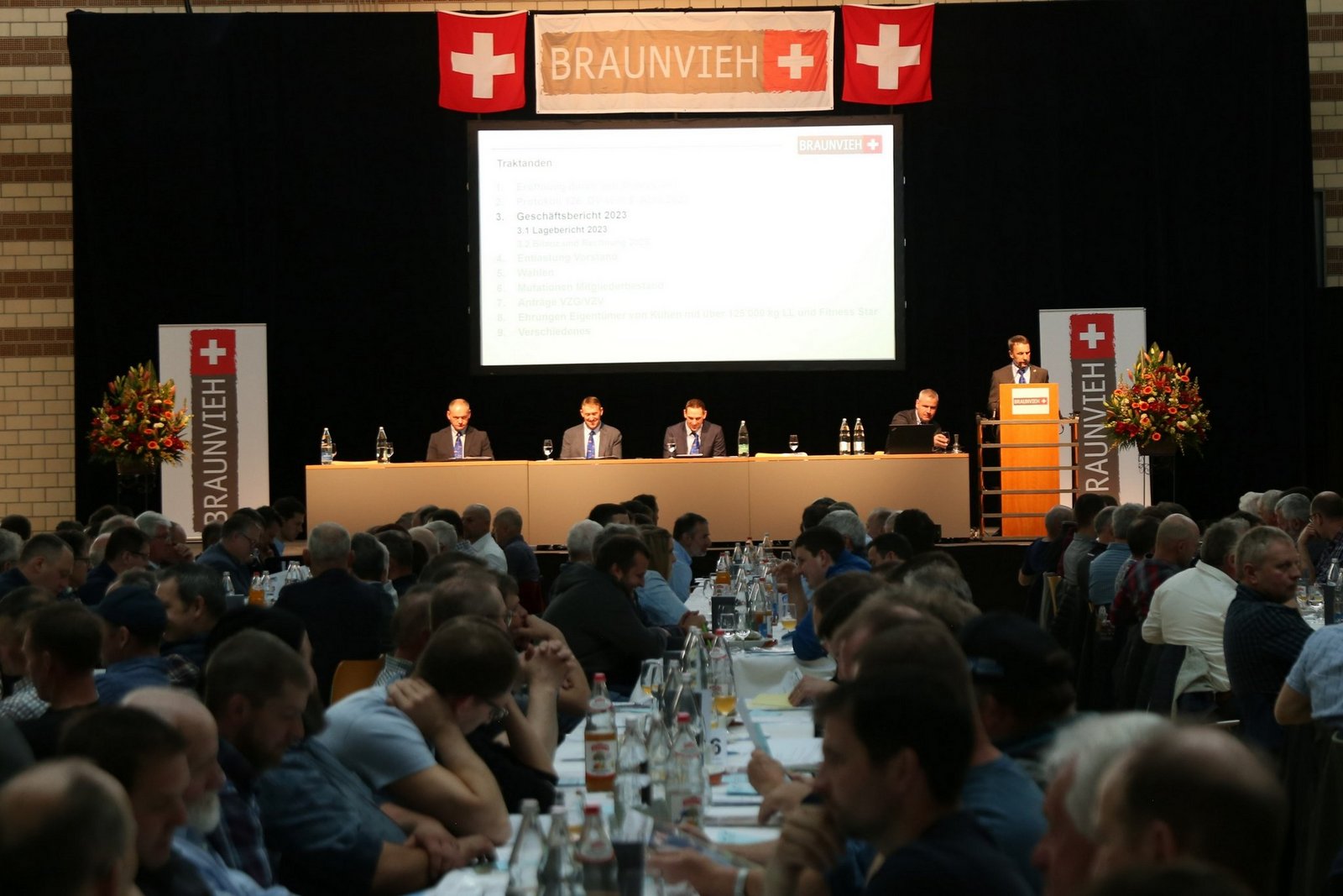 An seiner ersten Delegiertenversammlung als Direktor konnte Martin Rust auf eine Vielzahl von erfolgreichen Verbandsaktivitäten zurückblicken. Von der Tendenz der sinkenden Milchkuhzahlen sei leider auch das Braunvieh betroffen. Die Anzahl weiblicher Herdebuchtiere ging im Jahr 2023 um knapp 1500 Tiere auf 152'235 zurück.
