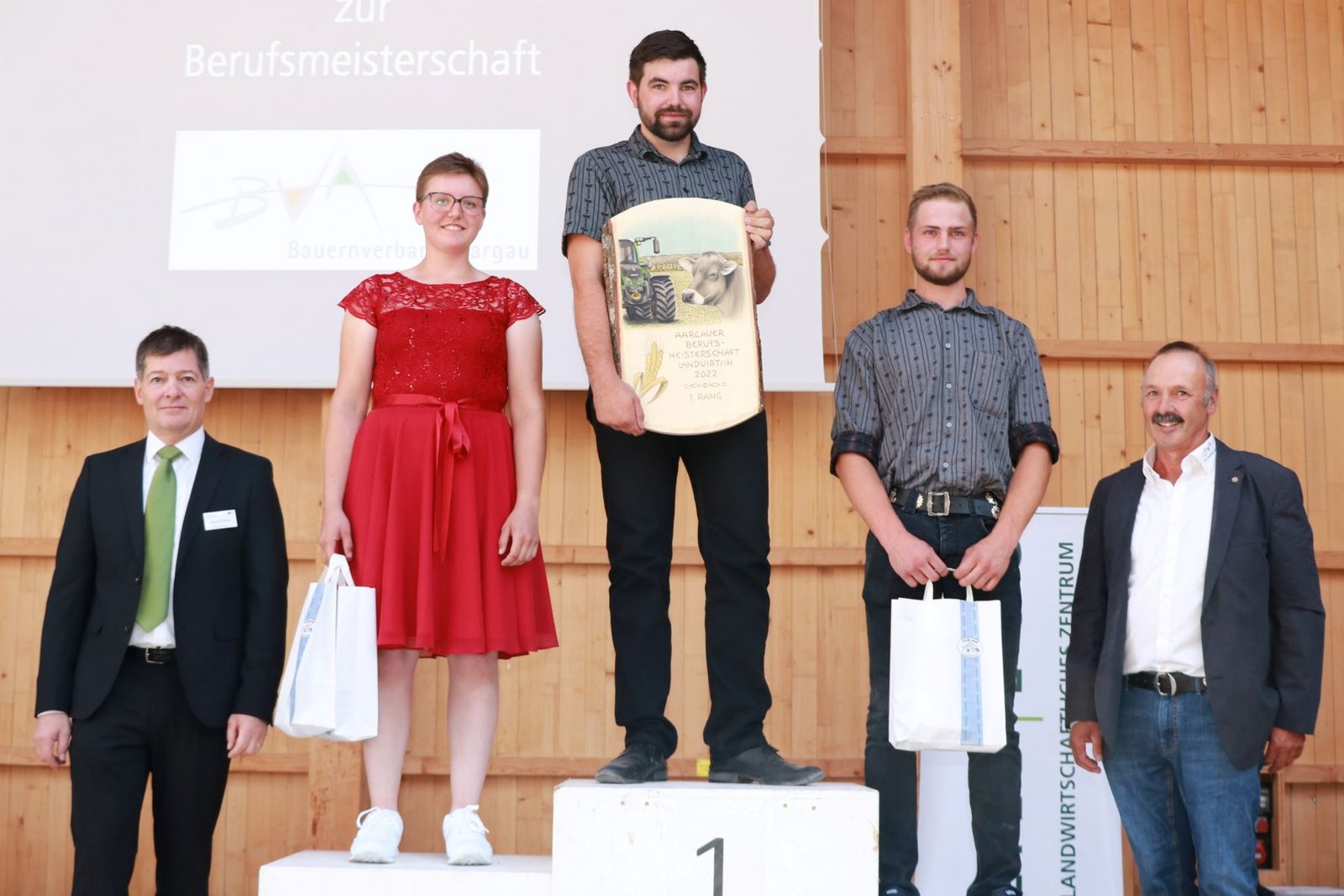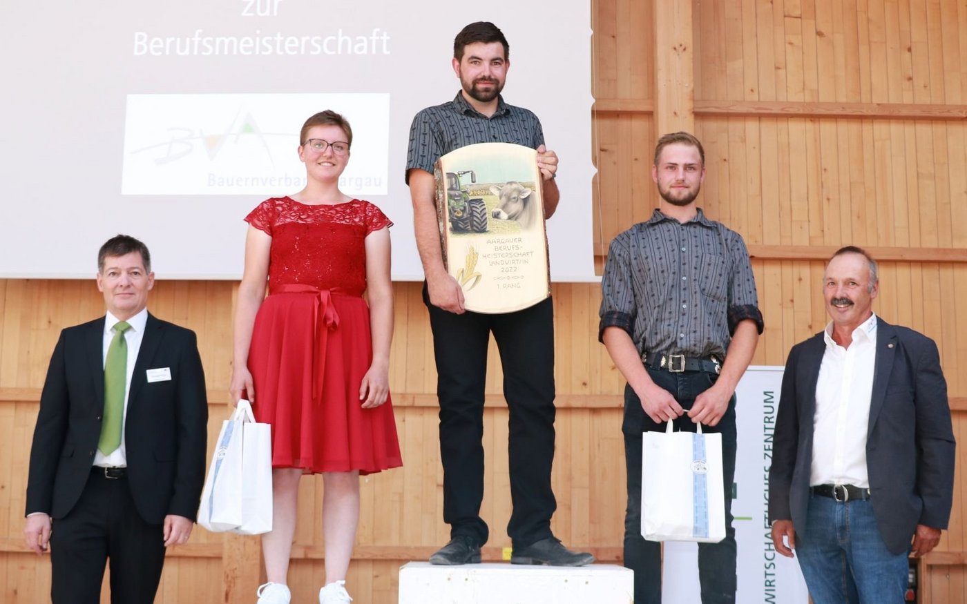 An der Schlussfeier wurden auch das Ergebnis der kantonalen Berufsmeisterschaft bekannt gegeben. Zuoberst aufs Podest stieg Willy Bertschi aus Lupfig, gefolgt von Simone Heimgartner aus Oberrohrdorf. Die beiden Zweitausbildner hatten mit einer Durchschnittsnote von 5,7 auch die besten Berufsabschlüsse als Landwirt(in) geliefert. Den dritten Platz der Berufsmeisterschaft sicherte sich Simon Suter aus Goldau SZ.