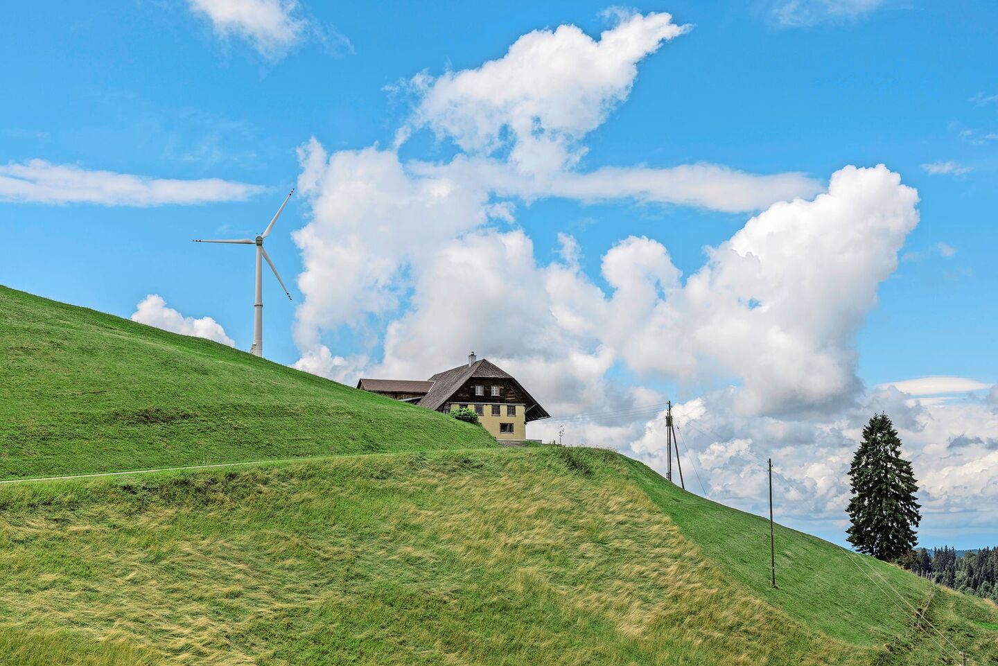 Die Leistung passt zu Bedarf und Netzkapazität, der Anlagentyp zu den Windverhältnissen, die Dimensionen entsprechen den raumplanerischen Vorgaben, die Nachbarn beschweren sich nicht und es gab Abklärungen zur Biodiversitätswirkung – es bleibt die Frage nach dem Landschaftsbild. «Weiter oben steht eine Funkantenne», meint Bernhard Riedweg. «Mein kleines Windrad gefällt mir deutlich besser.»