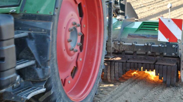 Das Abflammen ist eine biotaugliche Strategie zur Unkrautregulierung. Dabei wird nicht in den Boden eingegriffen, sondern es werden nur die oberirdischen Pflanzenteile geschädigt. Dies geschieht durch Wärme, die bei der Verbrennung von Gas entsteht. Das thermische Abflammen sei ein physikalischer Prozess und nicht zu verwechseln mit dem chemischen Abbrennen, bei dem mit synthetischen Wirkstoffen in den Stoffwechsel der Pflanzen eingegriffen wird, heisst es im Merkblatt.
