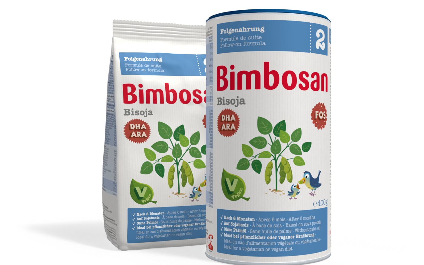 Bimbosan Bisoja 2 ist eine rein pflanzliche Folgenahrung für Babys und Kleinkinder ab sechs Monaten. Sie folgt der bereits im Markt erhältlichen Säuglingsnahrung Bisoja 1. Bisoja wurde für Babys und Kleinkinder entwickelt, die eine vegane Ernährung benötigen, so Hochdorf. Sie sei zudem speziell geeignet für Babys und Kleinkinder bei Galaktosämie, einer angeborenen Stoffwechselstörung, bei der sich zu viel Einfachzucker im Blut befindet, oder bei einer Gastroenteritis, einer Entzündung von Magen und/oder Darm.