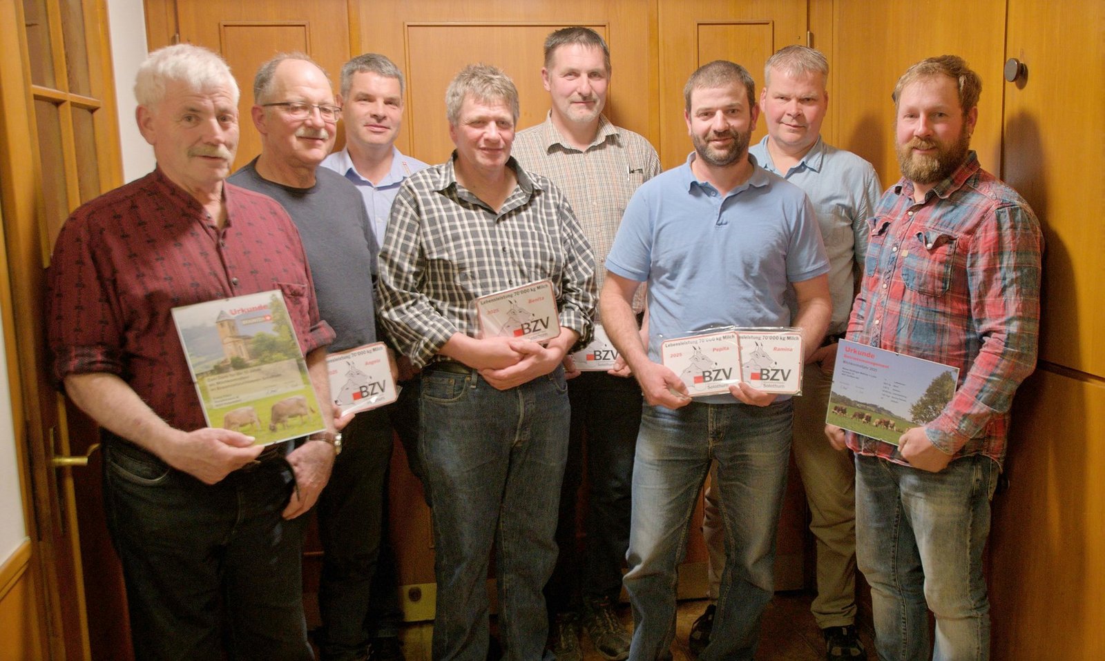 Sieben Züchter konnten für ihre Kühe mit einer Lebensleistung von 70 000 kg Milch mit einer Plakette geehrt werden. Geehrt wurden auch die zwei Milchkontrolleure Franz Flück für zehn und Jürg Mosimann für zwanzig Jahre Milchkontrolleurtätigkeit.