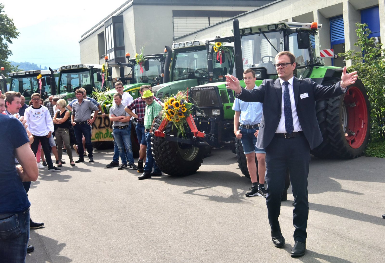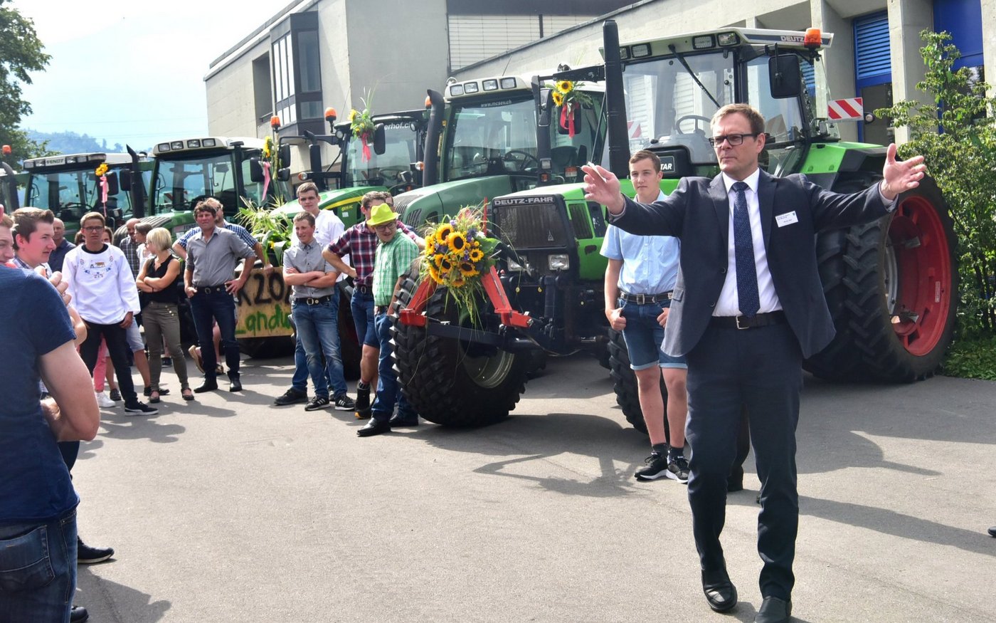 Die Stimmung war bereits vor der offiziellen Feier vor dem Landwirtschaftlichen Zentrum (LZSG) in Schwung. Dabei fuhren über 20 junge Landwirte die mit ihren imponierenden Traktoren auf. So viele und so grosse Maschinen versetzte das Publikum ins Staunen. Teils kamen die stolzen Bauern von weit her ins Rheintal angefahren.