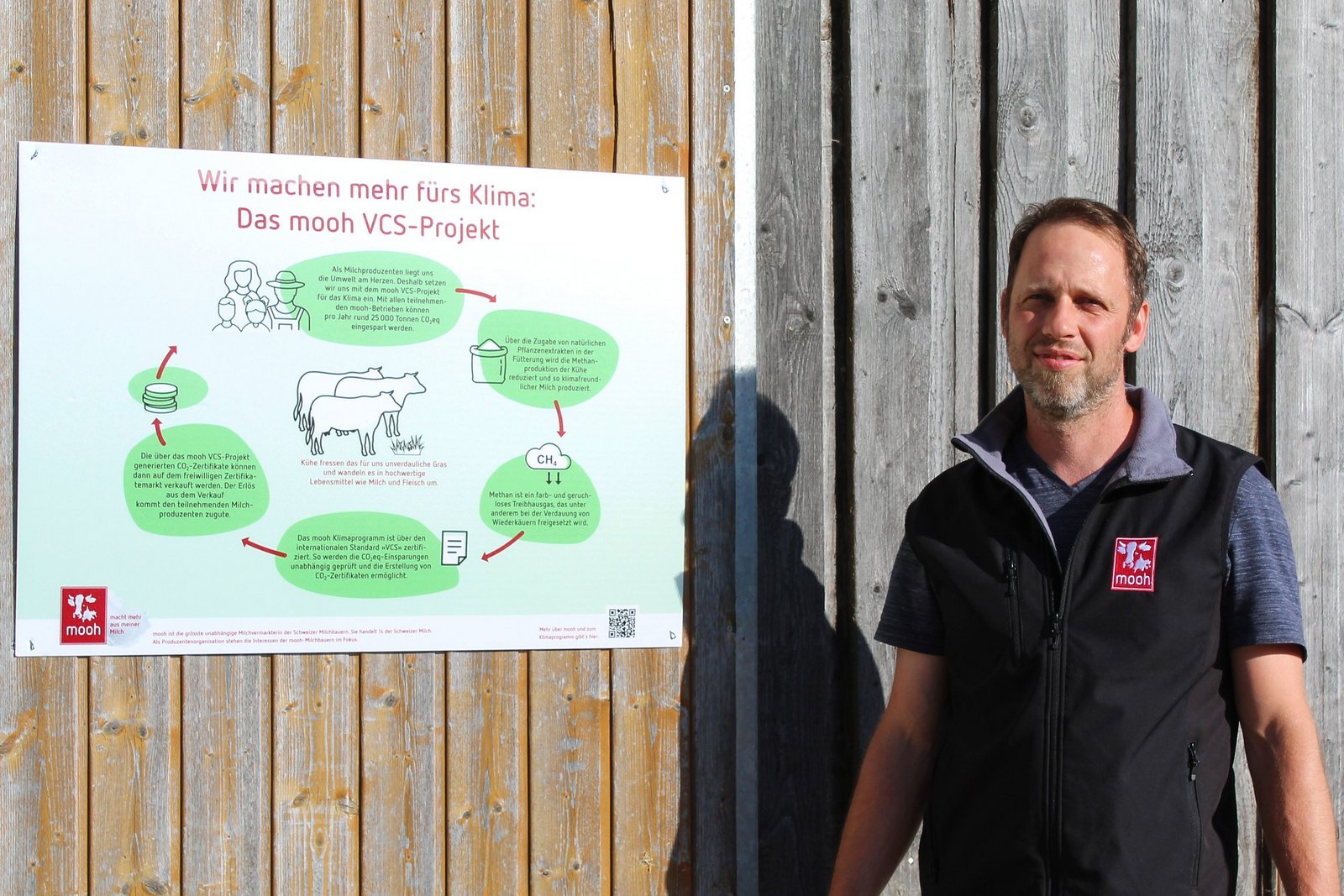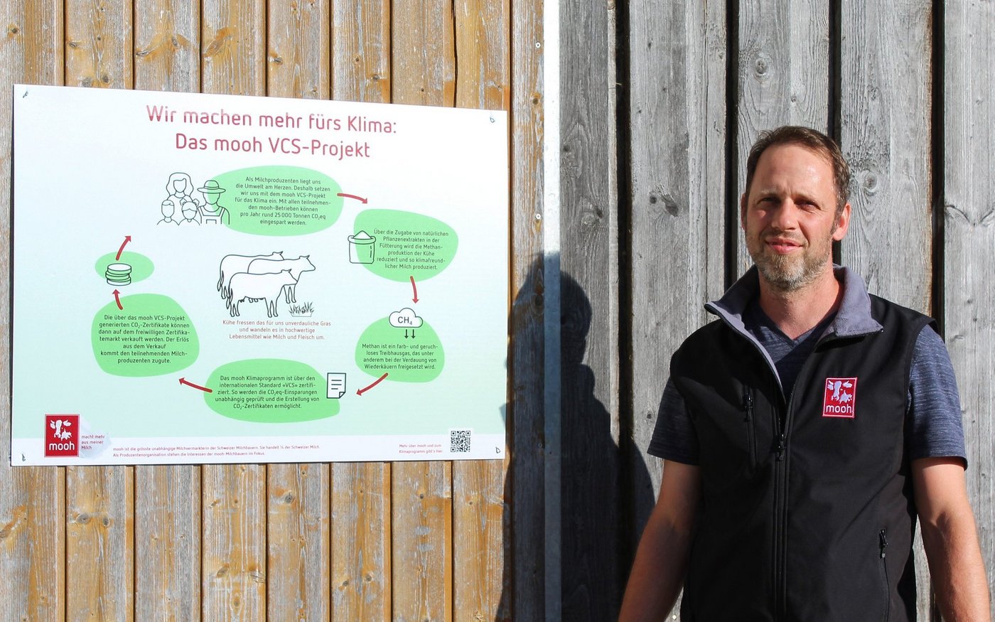 Thomas Aregger, der das Klimaprogramm vonseiten des Mooh-Verwaltungsrates von Anfang an betreut, schildert die Motivation hinter der neuen Infotafel wie folgt: «Als Bauern und Milchproduzenten werden wir von der Öffentlichkeit immer wieder angegangen, dass wir Klimasünder seien. Dank der Infotafel kann ich nun noch einfacher aufzeigen, was ich noch zusätzlich für das Klima mache.»