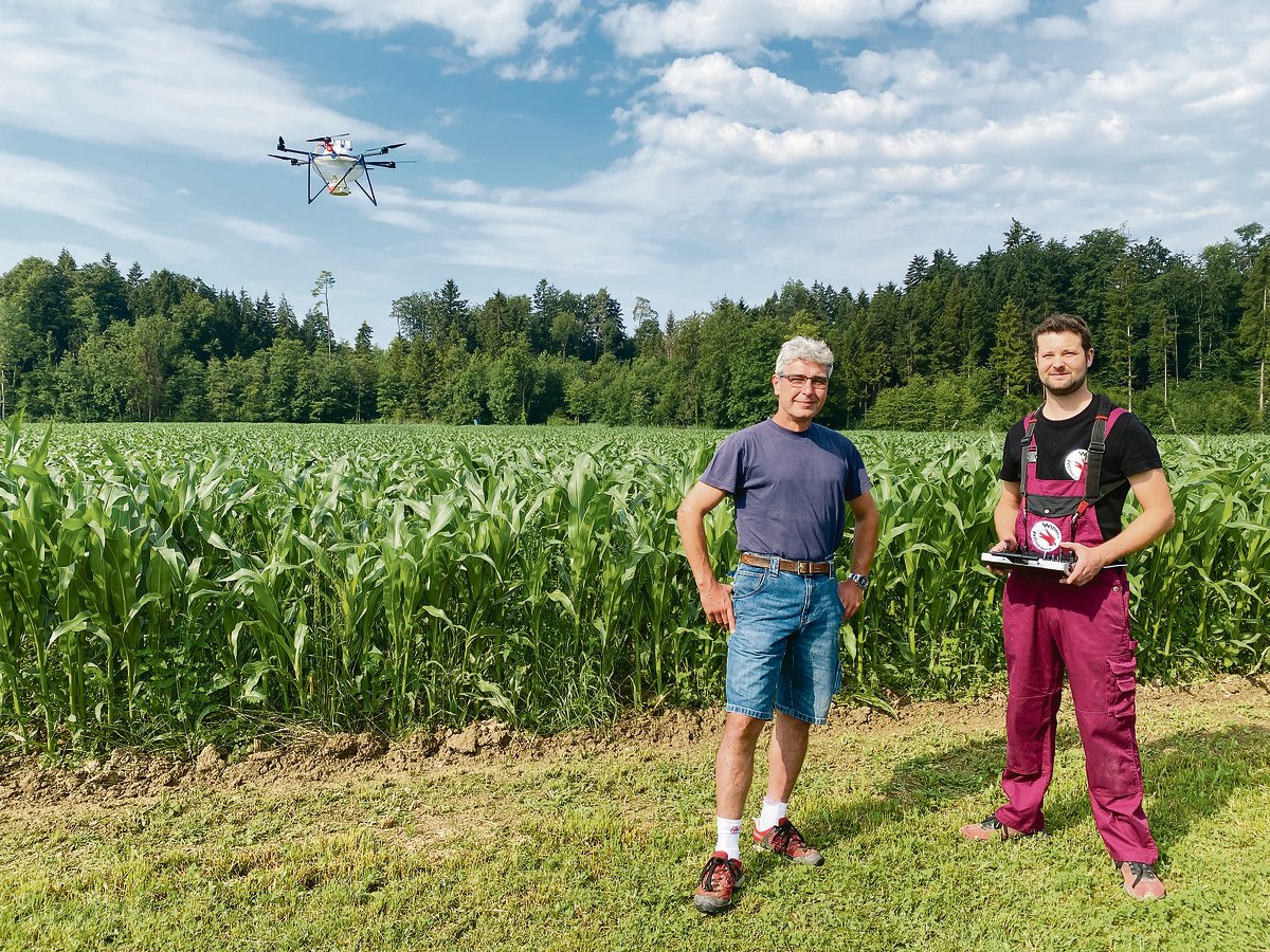 Es ist zwischen 5 und 6 Uhr morgens, als Thomas Widmer seinen silbrigen Peugeot fertig belädt. Zwei Drohnen, fünf Akkus, eine Autobatterie zum Aufladen der Akkus und einige Säcke mit kostbarem Gut stehen im Kofferraum. In den Säcken: Kügelchen aus Maisstärke, die heute über den Maisfeldern abgeworfen werden. Heute hat Widmer viel vor, insgesamt muss er bis zu 500 km fahren, um die 90 Hektaren Maisfläche, die heute…