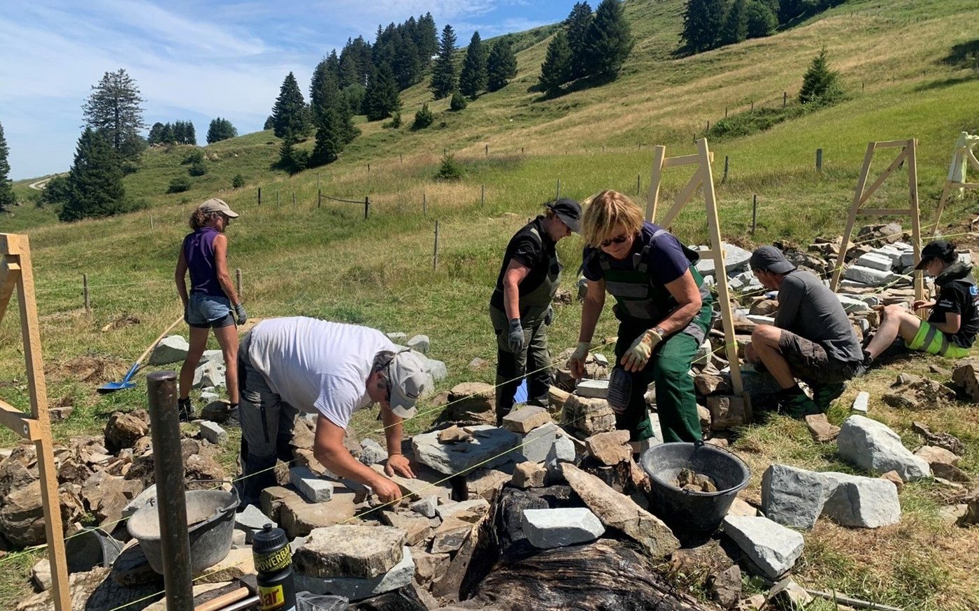 Die Teilnehmer(innen), die aus allen Ecken der Schweiz kamen, erlernten die Kunst des Trockenmauerbaus während einer Ferienarbeitswoche. Bei ihrem Einsatz durften sie die typisch appenzellische Hügellandschaft kennenlernen. «Solche Trockenmauerwochen sind bei unseren Freiwilligen sehr beliebt», stellt Sarah Menegale, Geschäftsleiterin der SUS, fest. «Sie bieten den Teilnehmerinnen und Teilnehmern eine ideale Verbindung zwischen konkretem Engagement, dem Lernen eines traditionellen Handwerks und dem Entdecken von wunderschönen Orten in der Schweiz.»