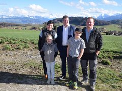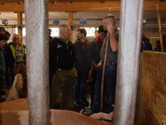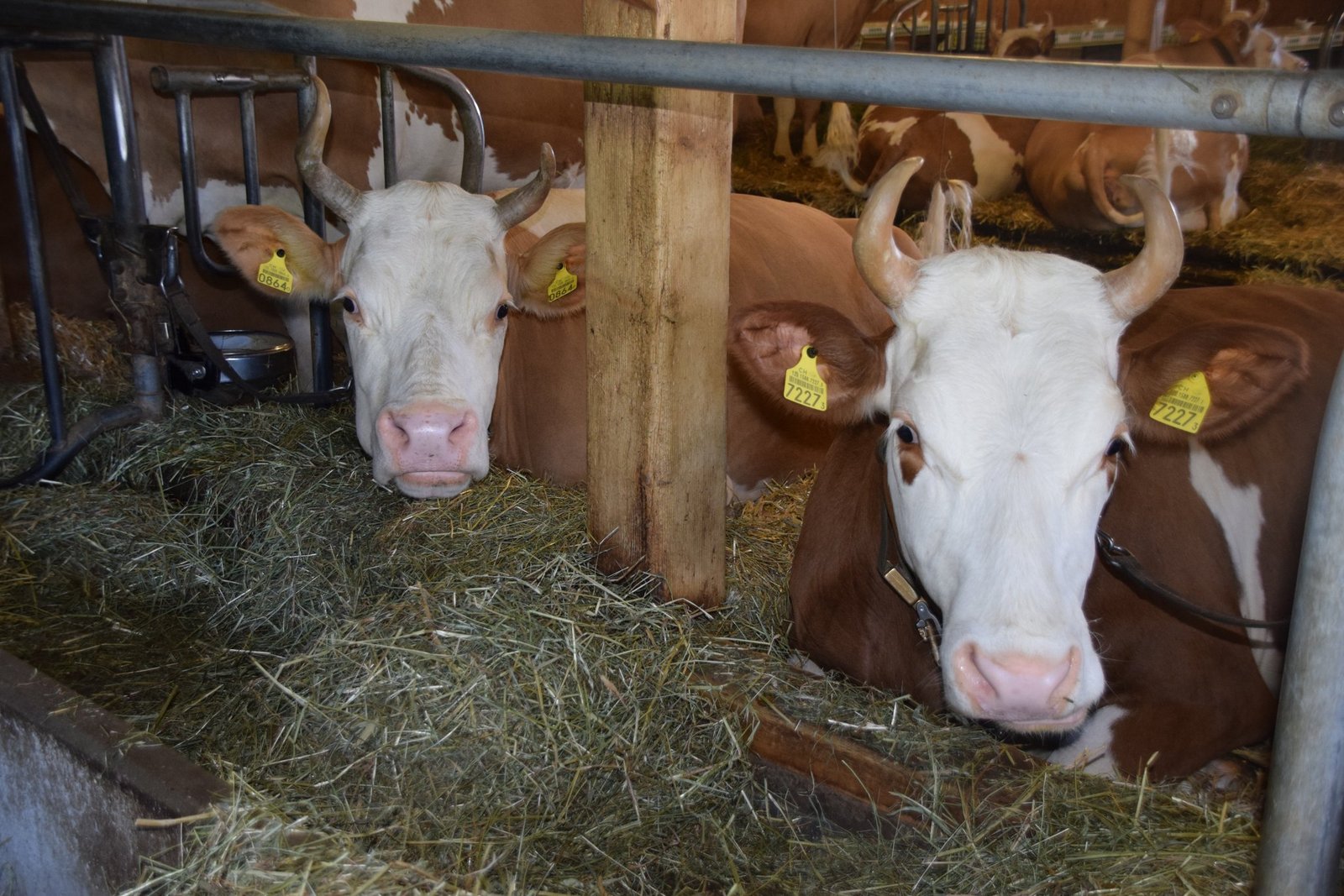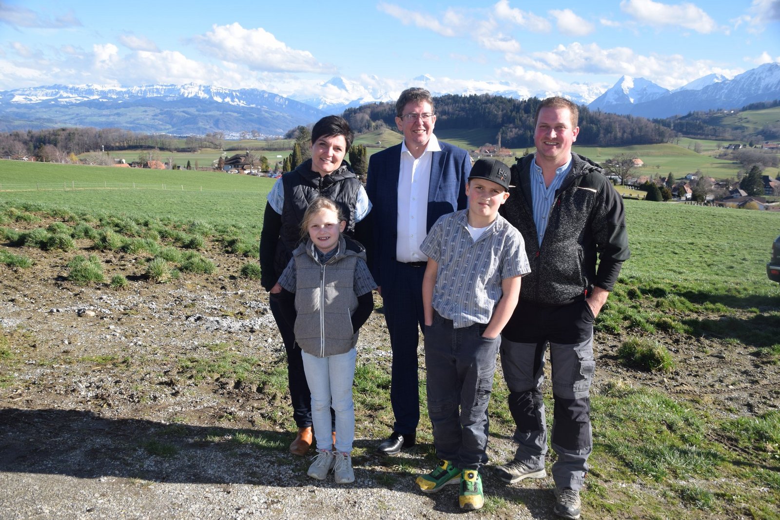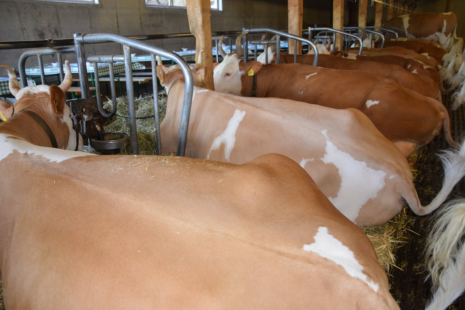 Am Nachmittag wurde der schöne Reinzuchtbetrieb von Roland und Brigitte Knutti in Riggisberg BE besucht. Auch Knutti hält seine Kühe in einem Anbindestall. Die Tiere sind in einem tadellosen Zustand, eingestreut in viel Stroh, fühlen sie sich sprichwörtlich «sauwohl». Auf dem Betrieb Knutti sprach auch der Bundesrat Albert Rösti zur Versammlung und gratulierte der IG zu ihrem Jubiläum. Und Rösti meinte noch: «Die Familie Knutti hat wunderschöne Kühe hier und ich habe früher zu Hause unseren Kühen auch noch die Schwänze gewaschen», sagte Rösti der Bauernsohn aus dem Berner Oberland lachend.