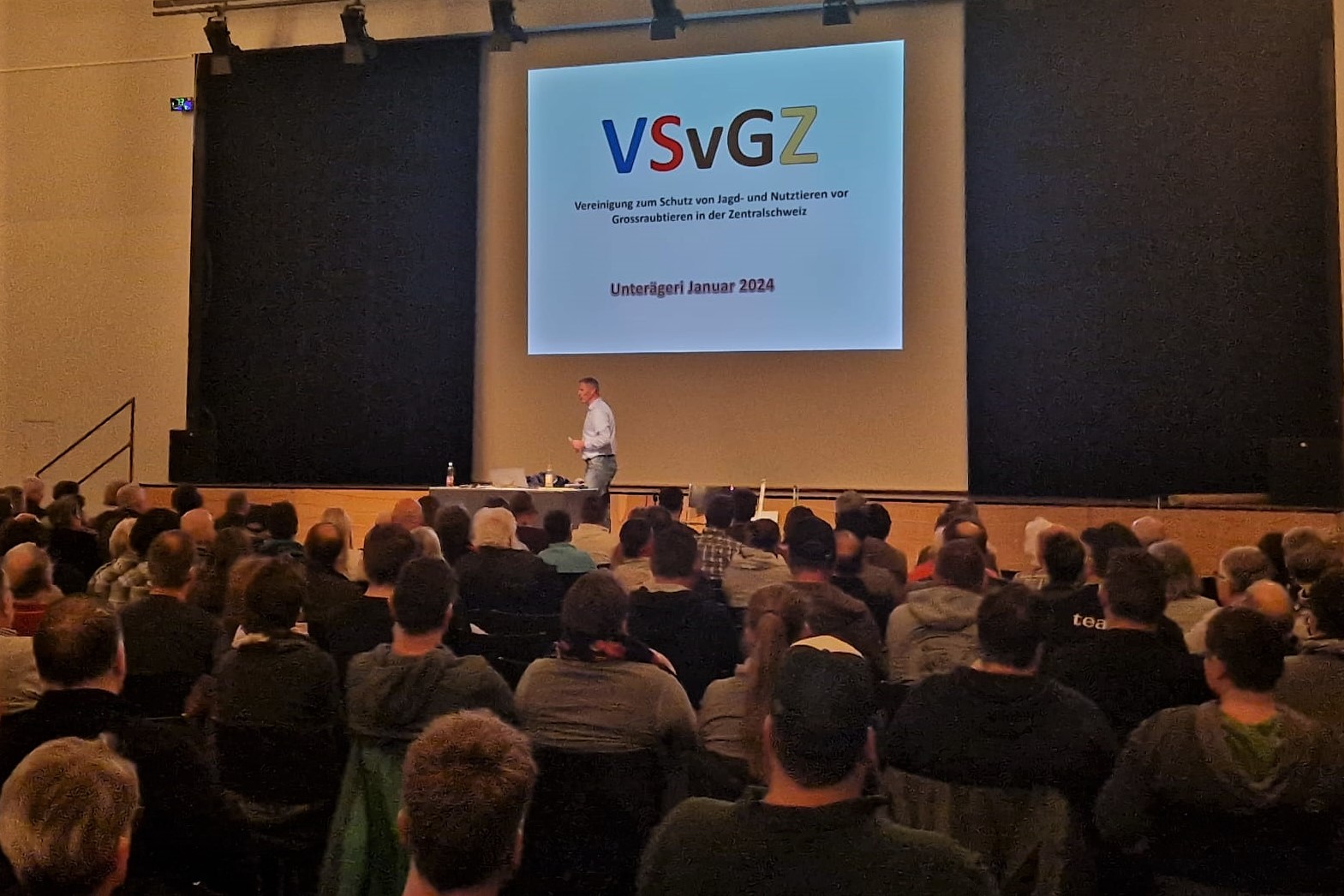 Am öffentlichen Vortrag «Wölfe im Mittelland» in der Ägerihalle in Unterägeri nahmen rund 400 Interessierte teil. Der Anlass wurde von der Vereinigung zum Schutz von Jagd- und Nutztieren vor Grossraubtieren der Zentralschweiz (VSvGZ) und vom Initiativkomitee «Nationale Wolfsinitiative» organisiert. Gedrückte Stimmung infolge Wolfspräsenz Im Zentrum standen die beiden Referate von Biologe Marcel Züger aus Salouf GR…