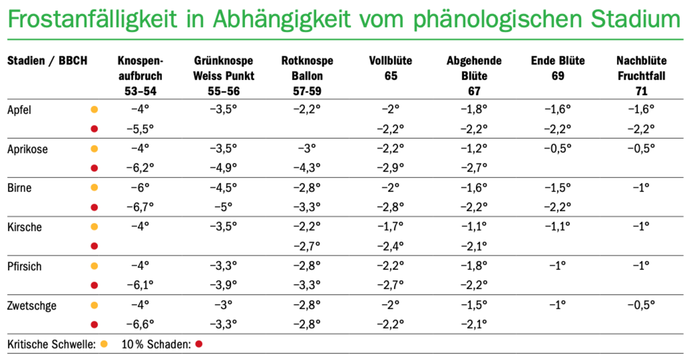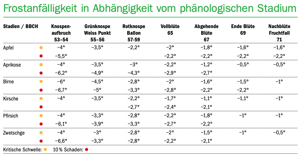 Spätfröste können in Obstkulturen zu grossen Schäden führen. Auch die milderen Winter in den vergangenen Jahren hätten daran nichts geändert, erklärt Andreas Klöppel, Fachspezialist Obst am LZ Liebegg. Die Obstbäume würden stattdessen früher in die Vegetation starten, womit sich die Spätfrostgefahr bis hin zu den Eisheiligen sogar um rund zwei bis drei Wochen verlängert habe. «Die Vegetation beginnt entsprechend…