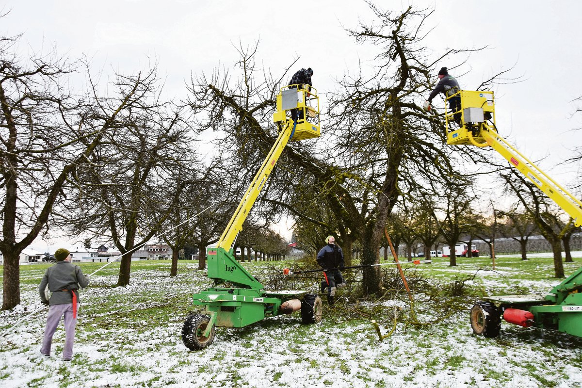 Da es nicht jedermanns Sache ist, auf einen Hochstamm zu steigen, übernimmt die auf Hochstammbäume spezialisierte Baumschnittgruppe der Mosterei Ramseier Aachtal aus dem thurgauischen Oberaach diese diffizile und nicht ungefährliche Arbeit für die Obstproduzenten im Auftragsverhältnis. Der Thurgauer Landwirt Hans Forster dirigiert diese Baumschnitttruppe seit zehn Jahren. Bei unserem Besuch macht die Truppe im…