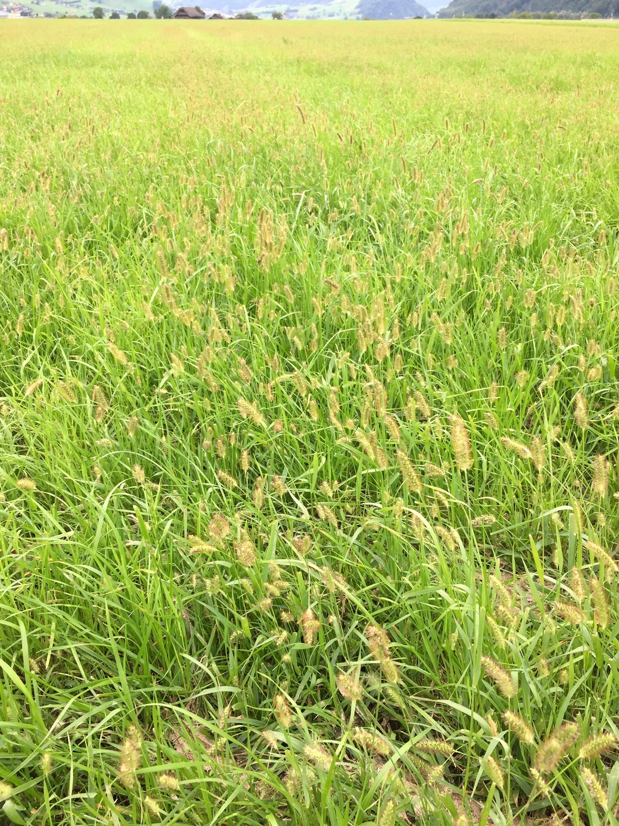 Die effizienteste und einfachste Massnahme ist das Hoch mähen – mindestens 8 cm. So hat es von Anfang an weniger offene Bodenstellen. Weiter spriessen die Gräser dann schneller und schliessen so die vorhandenen Lücken rascher. Ohne Lücken können die Borstenhirsen aber auch alle anderen Lückenfüller wie Löwenzahn, Ausläuferstraussgras, einjähriges Rispengras und gemeines Rispengras nicht aufkommen.