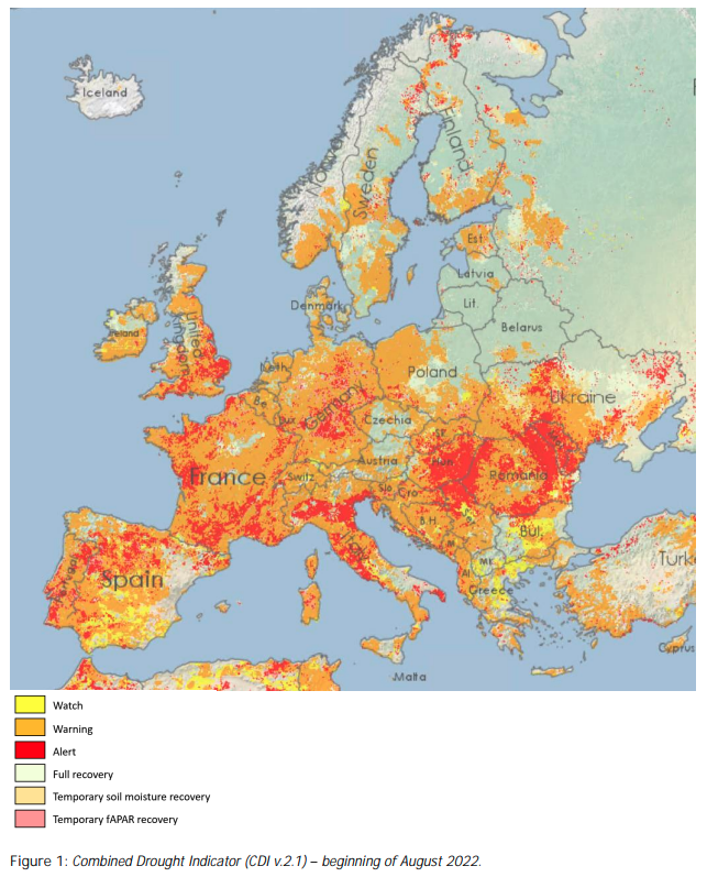 Den vollständigen Dürrebericht der EU mit Stand August 2022 finden Sie hier.