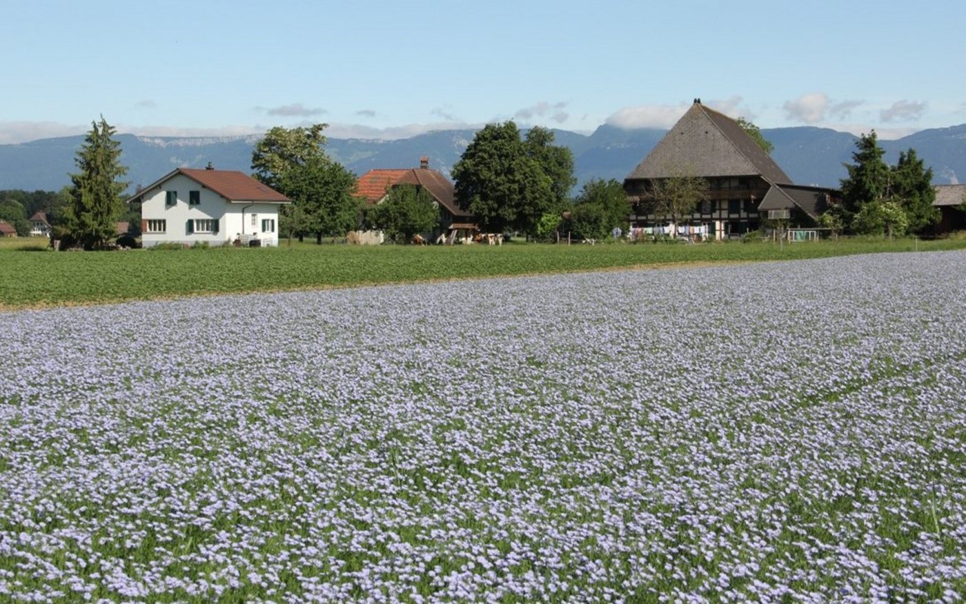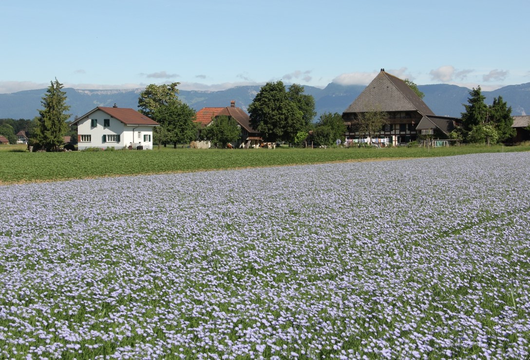 Entsprechend der Empfehlung von Biofarm habe er diese in Mischkultur mit Leindotter angesät und dank fachgerechter Bodenbearbeitung und geringem Druck von Unkraut auf der Parzelle habe er auf einen Striegel-Durchgang verzichten und gleichwohl eine gute Ernte einfahren können. Auch die Ölsaaten Lein und Sonnenblumen sowie Kichererbsen seien dem jungen Landwirt und HAFL-Abgänger gelungen, so Kessler.