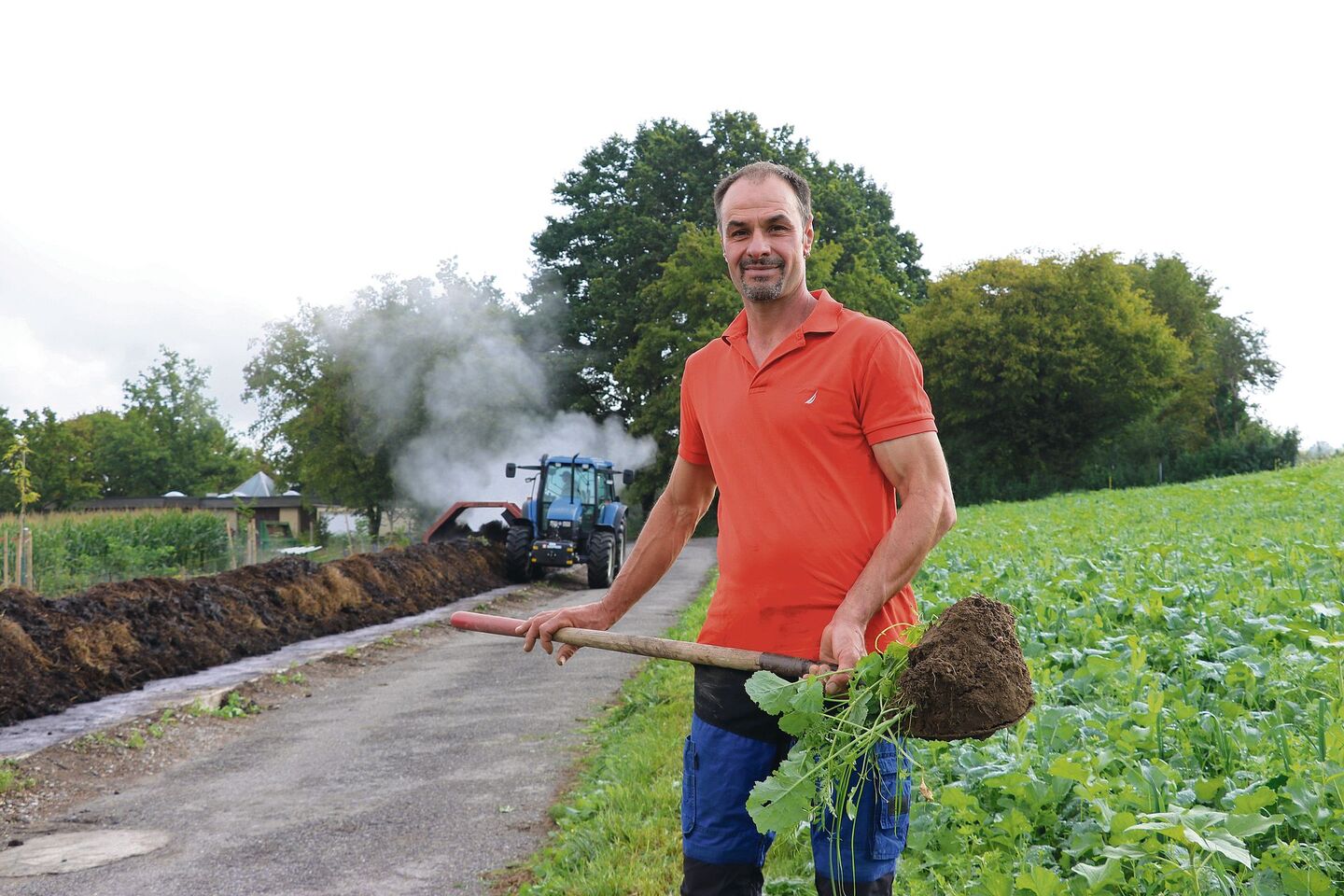 Marcel Frei sticht den Spaten in die Gründüngung und holt einen Klumpen Erde heraus. Dunkel und locker, gut durchwurzelt, ein paar Regenwürmer verziehen sich. «Die Gründüngung macht sich bezahlt», kommentiert der Landwirt aus Ehrendingen den erfreulichen Anblick. Kompost mit Rottelenker Bodenfruchtbarkeit und Humusaufbau seien ein langfristiges Geschäft, spielt er auf die Aufbauarbeit an, «aber es lohnt sich». Er…