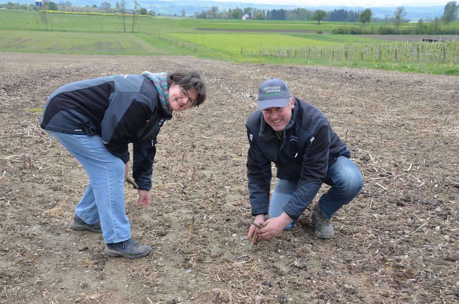Ende April 2024, zum Zeitpunkt des Besuchs auf dem Hof von Dajana und Hansruedi Germann, ragen ihre grünen und violetten Spargeln nur mit geringem Wuchs aus der Erde heraus. In diesem Frühjahr konnte das Betriebsleiterpaar aufgrund der langen Kälteperiode bislang nur kleine Mengen an Spargeln ernten. Der Mai solls richten Germanns setzen seit 15 Jahren auf den Anbau ihrer «Säntisblick»-Spargeln. Diese…