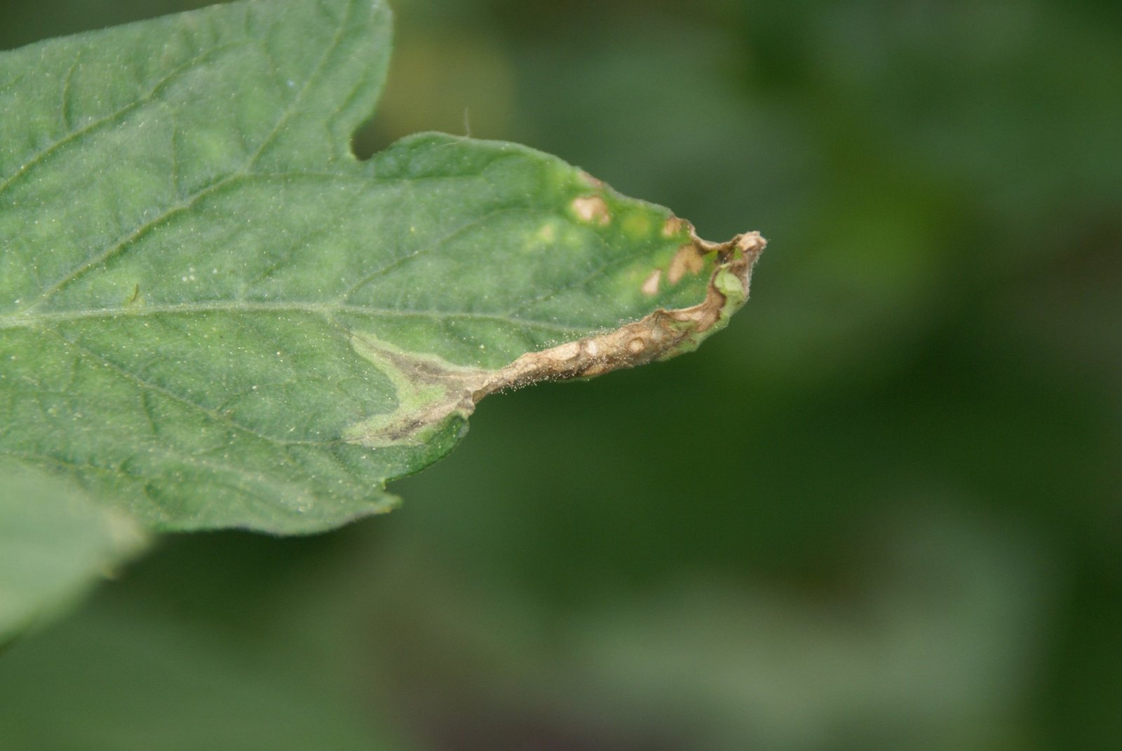 Im Laufe der letzten 14 Tage liess sich in Tomaten insbesondere in Tunneln Blattnässe nicht immer vermeiden, was das Auftreten von Blattkrankheiten begünstigt hat. Nach und nach zeigt sich nun an verbräunten Blattspitzen der mausgraue Sporenrasen der Graufäule, oder auf den Unterseiten des Laubes anfälliger Sorten tritt der Sporenrasen der Samtfleckenkrankheit in Erscheinung.