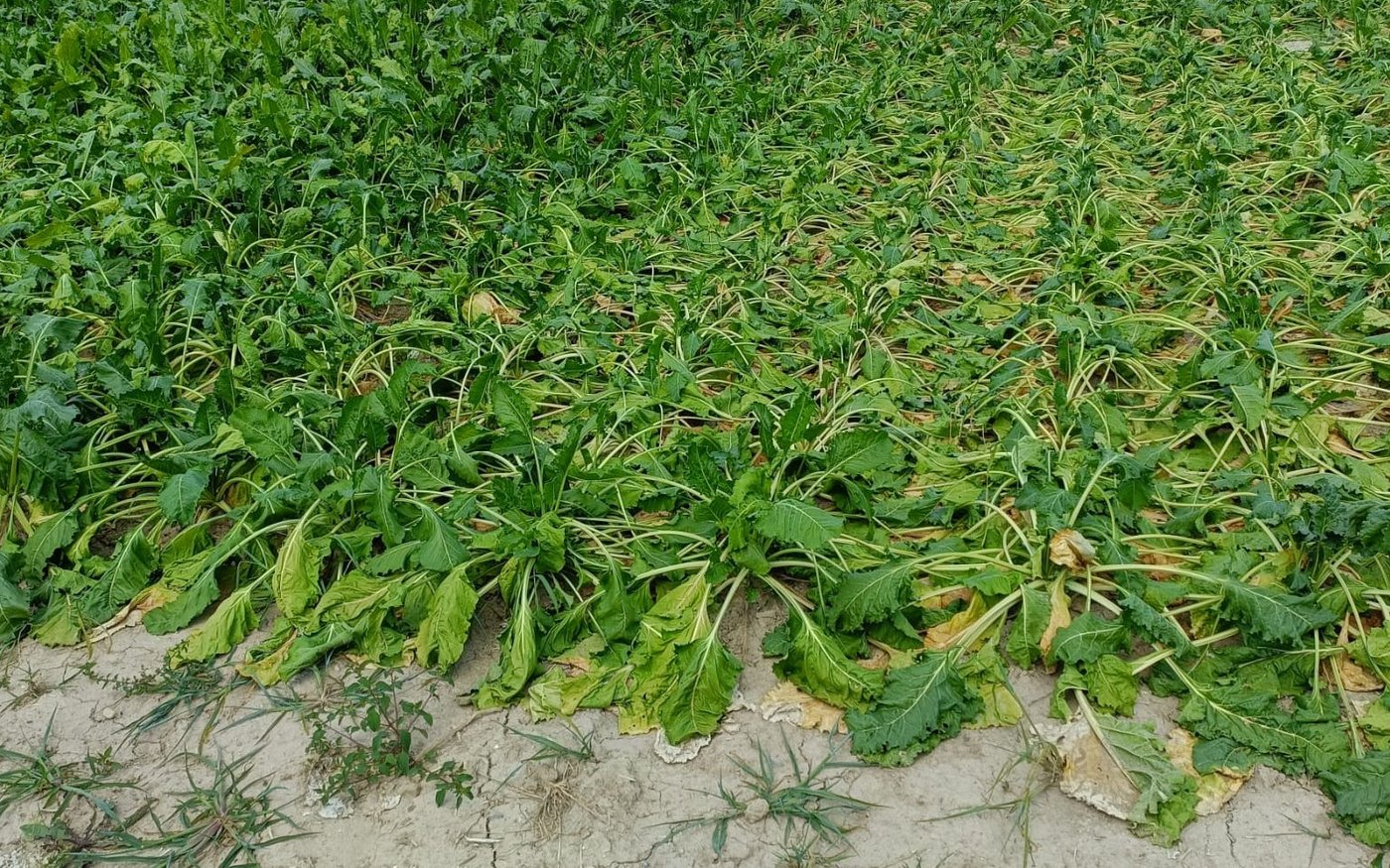 Das Blattwerk ist vielerorts gesund. Dank kühlen Nächten, meist tiefer Luftfeuchtigkeit und optimal terminierten Behandlungen konnte sich Cercospora bisher nicht ausbreiten. Auch die Bekämpfung der Grünen Pfirsichblattlaus war offensichtlich erfolgreich. Symptome der virösen Vergilbung sind kaum festzustellen. Nach der frühen Getreideernte überrascht es nicht, dass sich in den bekannten westlichen Befallsregionen die ersten Symptome von Syndrome Basses Richesses (SBR) bemerkbar machen.