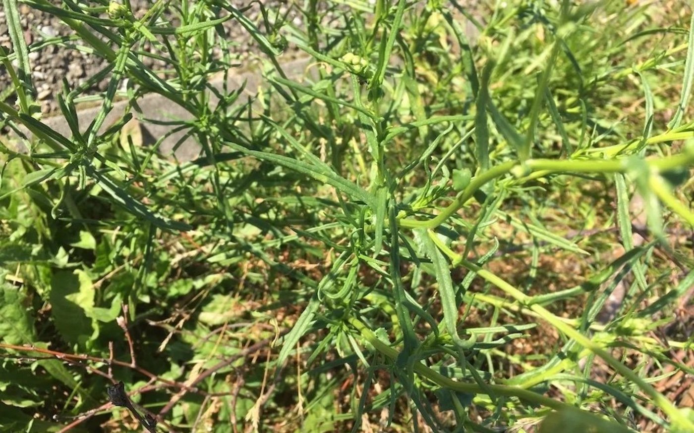 Das dritte im Bunde der gelb blühenden Kräuter mit Problempotenzial ist das Schmalblättrige Greiskraut (Senecio inaequidens). Info Flora führt es auf der schwarzen Liste der invasiven Neophyten auf. Schmalblättriges Greiskraut sei für das Vieh giftig und mit dem Wollhandel aus Südafrika eingeführt worden. Es entwickelt sich laut Info Flora hierzulande vor allem entlang von Strassen und Schienen.