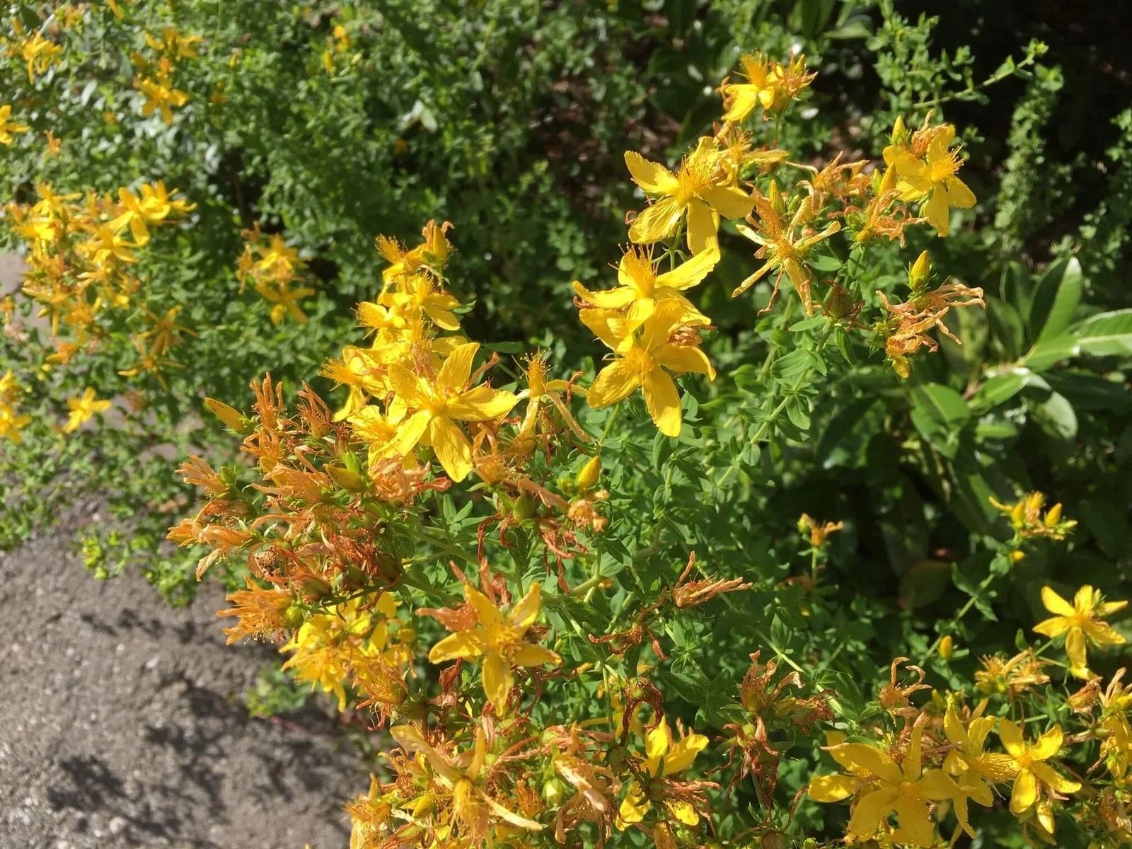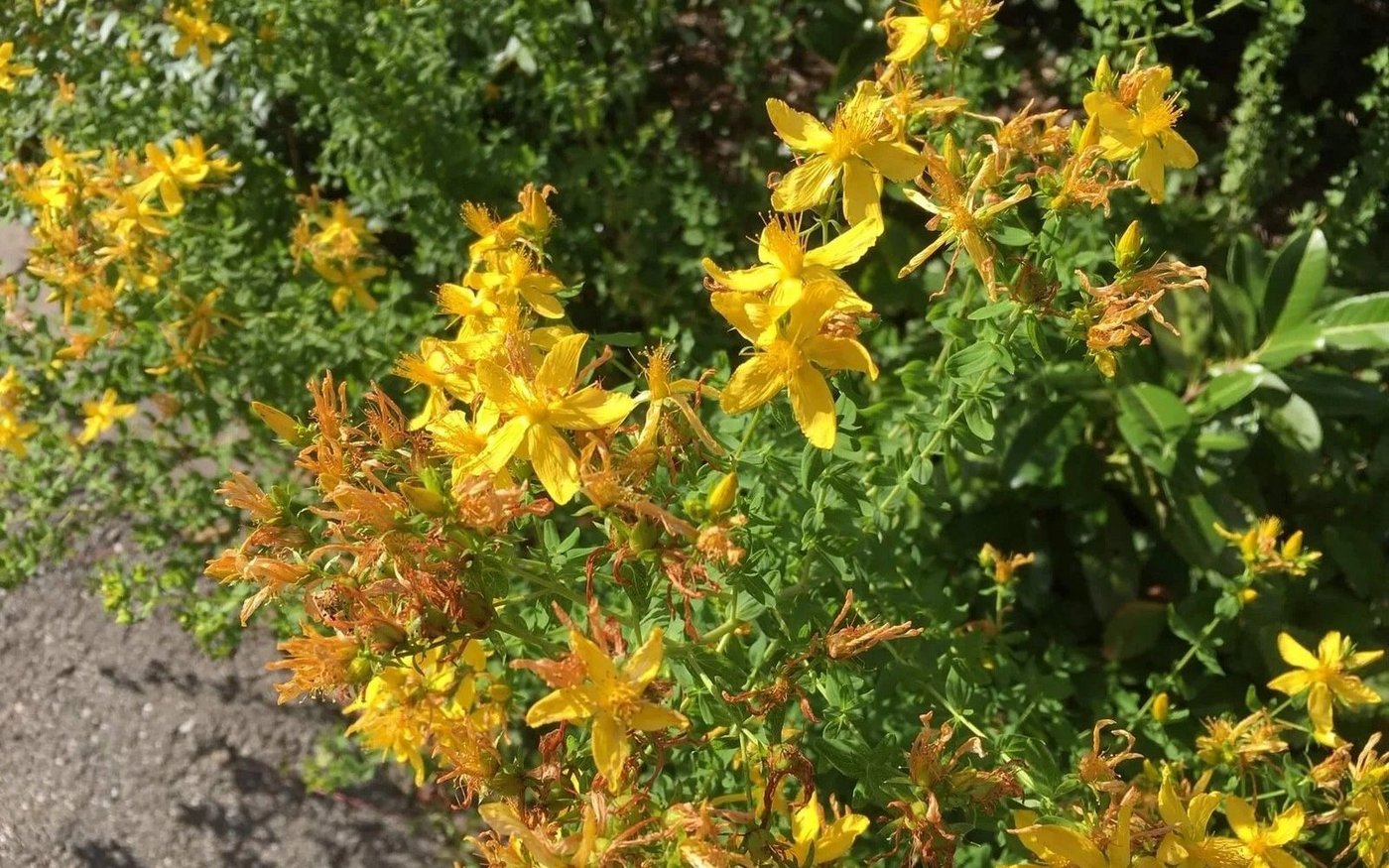 Johanniskraut: Eiförmige Blätter, im Sonnenlicht durchscheinend gepunktet. Grössere Blüten und vor allem Blütenblätter als Jakobskreuzkraut.