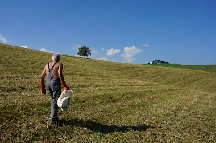 Ein Schatten huscht über das frisch gemähte Feld. Christian Zwahlen schaut auf. Hoch oben, am wolkenlosen Himmel, kreist ein Milan. "Der kennt mich und wartet schon auf die Mäuse", sagt Zwahlen und schmunzelt. Der stille Beobachter wird sich noch etwas gedulden müssen. Zwahlen hat die Mäusefallen gerade erst gerichtet. Die Chancen stehen aber gut, dass es später für den Raubvogel etwas zu fressen gibt, denn: "In fast…