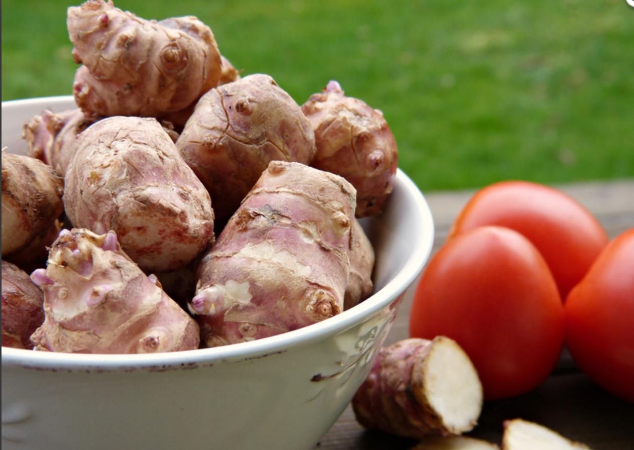 Der Topinambur gehört zur selben Familie wie die Sonnenblume und sieht in der Blüte ähnlich aus. Essbar sind die Wurzelknollen. In der Schweiz wird das Gemüse in kleinem Rahmen angebaut und ist damit ein wahrer Geheimtipp. Die Knollen können unter anderem gedünstet, gebacken oder frittiert werden.