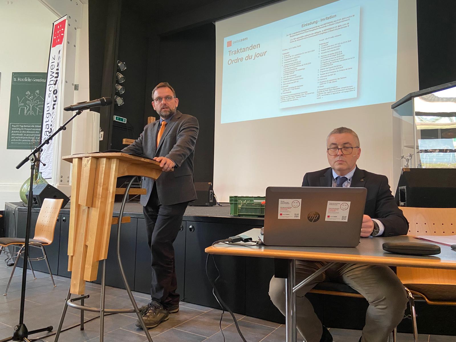 Geschäftsführer Christof Rüfenacht bestätigt die alarmierenden Worte des Präsidenten. Seit 2020 würden die Vermehrungsflächen für Pflanzkartoffeln abnehmen, zuerst langsam und nun beschleunigt. Die grossen Wetterschwankungen stellten den Anbau von Pflanzkartofffeln zunehmend vor Probleme. Die Abfolge von schwierigen Jahren entmutige die Produzenten. Die Referenzfläche von 1540 ha werde nicht erreicht. Die angekündigten Flächen würden im nächsten Wirtschaftsjahr unter 1400 ha liegen.