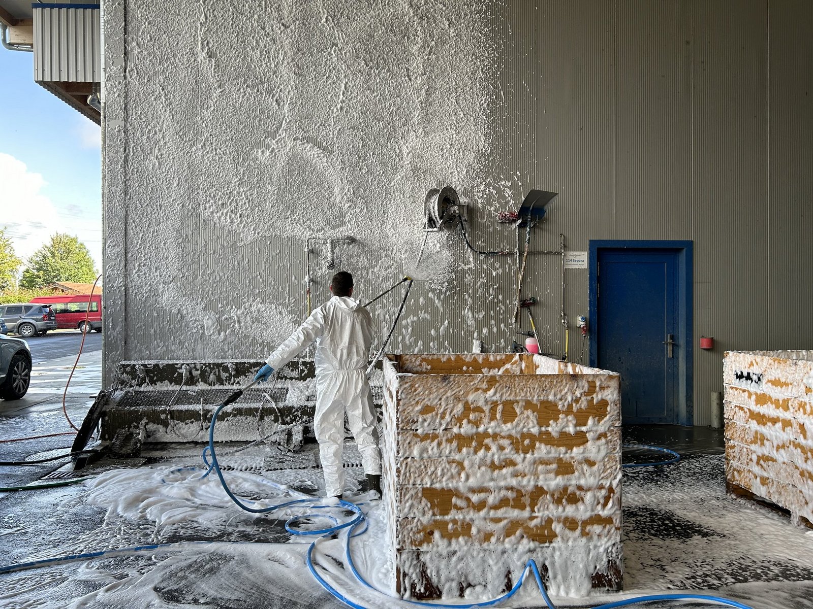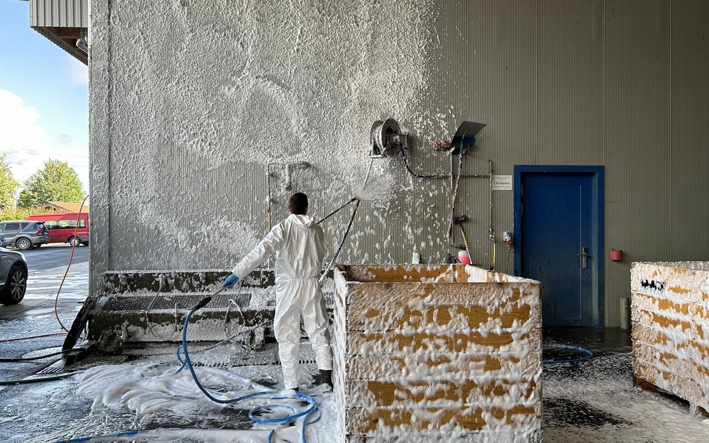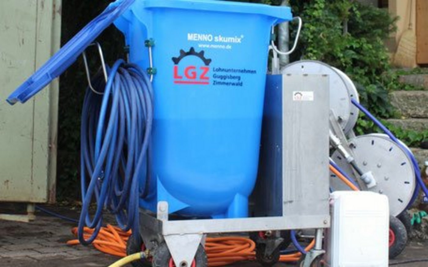 Eine Verschäumungsanlage wie sie Samuel Guggisberg hat, ist wohl einzigartig in der Schweiz. Aber das Lohnunternehmen Guggisberg stellt auch eine kleinere, handliche Skumixanlagen zum Ausmieten zur Verfügung. Auch Pius Fleischmann von Omya hat so eine Anlage, die man ebenfalls ausmieten könne, sagte Adrian Imhof, ebenfalls von Omya. [IMG 5]