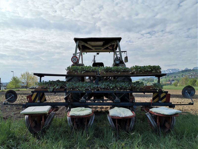 -- NO IMAGE --p>-- NO IMAGE --em>Mit etwa zwei Stundenkilometern fährt der Traktor übers Feld und die vier Helfer lassen die Setzlinge in die Erde fallen. Zwei Personen folgen der Truppe und gleichen aus, wo nicht regelmässig gesetzt wurde. (Bild ag) -- NO IMAGE --/em>-- NO IMAGE --/p>