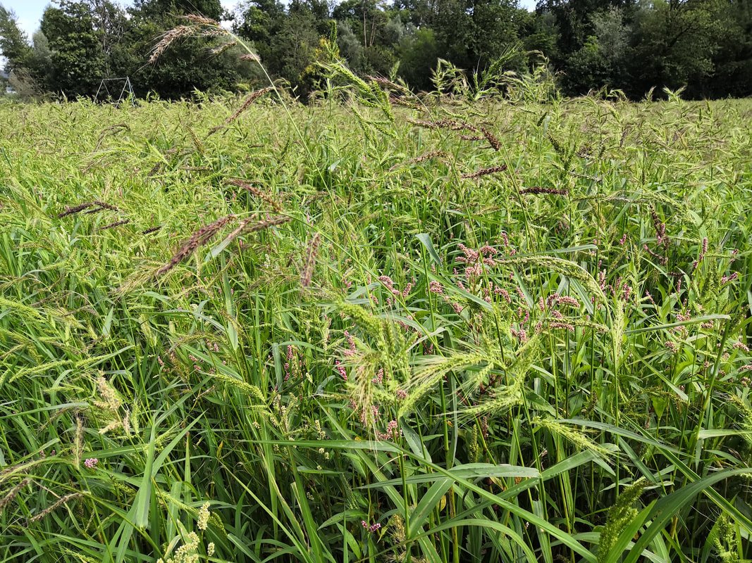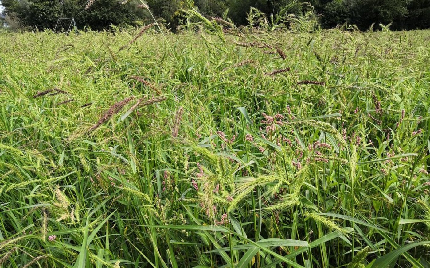 «Dieses Jahr ist ziemlich viel schief gegangen», sagt Daniel Amgarten vom Pilotbetrieb Max Schwarz AG im aargauischen Villigen. «Wir machen seit 2019 auf einer Parzelle gleich neben der Aare Nassreisanbau und sowohl 2019 wie auch 2020 gab es eine schöne Ernte», erzählt er weiter. In den beiden letzten Sommern habe aber auch das Wetter ziemlich gut mitgespielt. Dieses Jahr sei es einerseits viel zu kühl gewesen und andererseits hätten sie den grossen Unkrautdruck mit Hühnerhirse nicht in den Griff bekommen. «Wir haben den Reis dieses Jahr nicht gesetzt, sondern gesät, da wir letztes Jahr eigentlich gute Erfahrungen mit dem ausgesäten Reis gemacht haben», erklärt Daniel Amgarten. Allerdings sei der Reis temperaturbedingt dann eben sehr verhalten gewachsen und das Reisfeld konnte erst spät geflutet werden – zu spät. Die Hühnerhirse war dem Reis da bereits über den Kopf gewachsen und das Getreide hatte keine Chance mehr. «Schliesslich war der Unkrautdruck so gross, dass wir aufgeben mussten.»