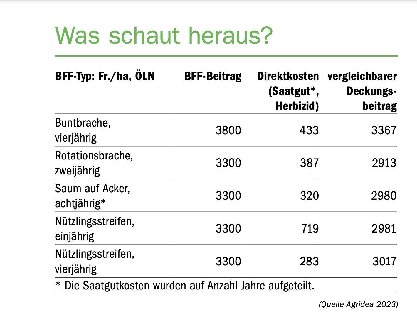 Manchmal hat man den Eindruck, dass Bundesbern ungeachtet aller natürlichen und wirtschaftlichen Gegebenheiten verordnet. Das ist auch der Fall bei den 3,5 % Acker-Biodiversitätsförderflächen (BFF), die 2024 alle Betriebe in der Tal- und Hügelzone auf ihrer Ackerfläche anbauen müssen, ausser sie haben weniger als 3 ha offene Ackerfläche. Einen winzigen Hoffnungsschimmer gibt es, dass die Acker-BFF auf 2025 verschoben…