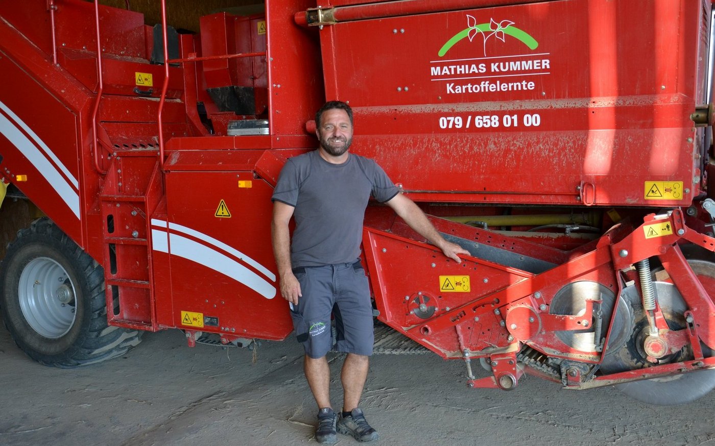 Am ersten September fängt die Einlagerung der schalenfesten Kartoffeln an. «Dann beginnt der Ansturm», sagt Mathias Kummer, der in Limpach BE einen eigenen Betrieb und ein Lohnunternehmen mit fünf bis sechs Teilzeitangestellten führt. Seine fünf Grimme-Roder (ein- und zweireihig) sind dann gefragt. Für ihn ist klar: Wenn die Kartoffeln reif sind, müssen sie möglichst bald aus der Erde. Sie werden ja nicht besser. Da…