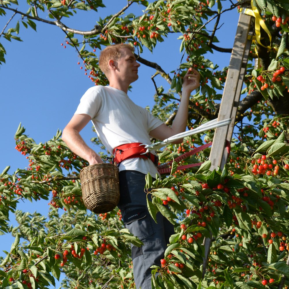 • Zum beidhändigen Pflücken einen Obstpflückgurt verwenden. Achtung: Obstpflückgurte dürfen nur an gut gesicherten Leitern eingesetzt werden!