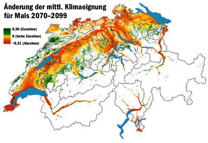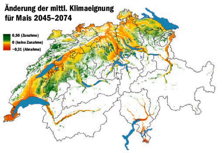 Fährt man dieser Tage durchs Mittelland, sieht man vielerorts Mais wachsen, je nach Saatzeitpunkt in unterschiedlicher Grösse. Früh gesäte Sorten könnten in gewissen Regionen ein Weg sein, um in Zukunft mit zunehmend trockenen und heissen Sommern gute Maiserträge einzufahren. Entscheidend wird aber auch die Reifung. «Spätreifere Sorten sind eine erfolgversprechende Strategie, wenn es wärmer wird, aber keine…