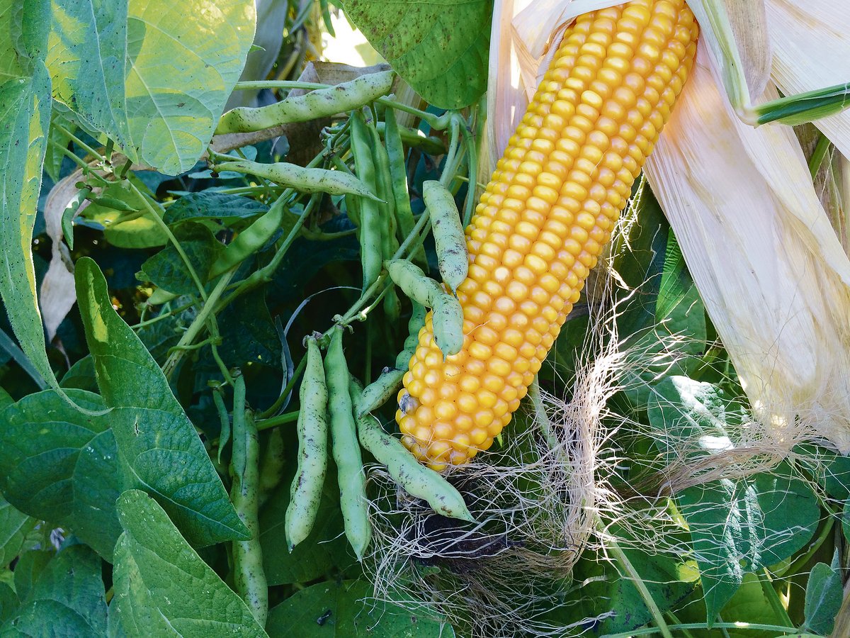 Bohnen gehören zu den Leguminosen. Diese können über Knöllchenbakterien Luftstickstoff fixieren. Dieser steht der Bohne und zu einem gewissen Teil auch dem Mais zur Verfügung, vor allem aber der Folgekultur im nächsten Jahr. Dies spart Mineraldünger, zu dessen Herstellung viel fossile Energie benötigt wird.