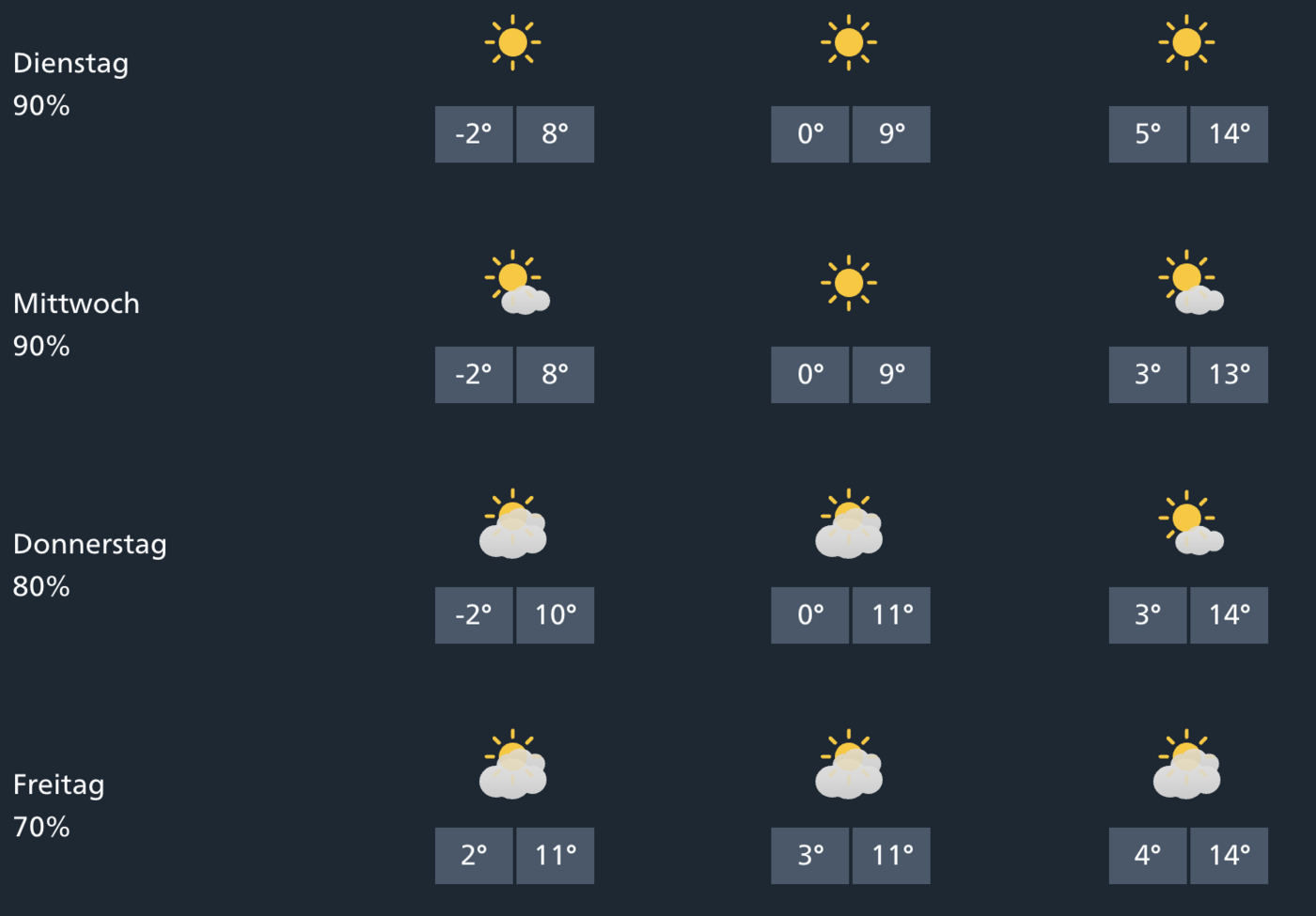 Wetterkarten und meteorologische Gefahrenmeldungen finden Sie z. B. bei Meteo Schweiz.