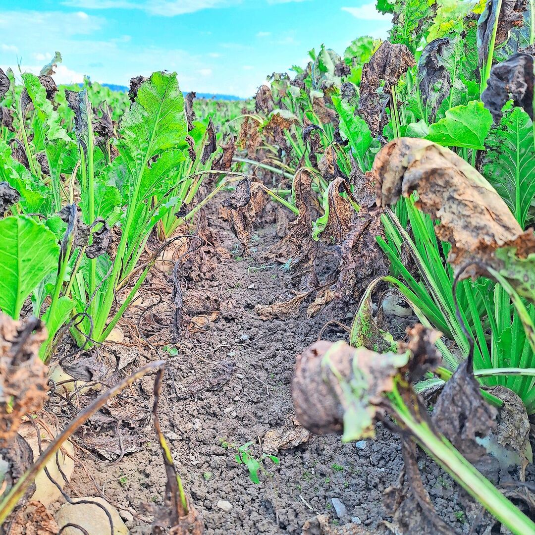 Das Schadensausmass eines frühen Cercospora-Befalls kann sehr gross ausfallen. Aus diesem Grund sollten ab sofort regelmässige Feldkontrollen durchgeführt werden. Nur so kann der Erstbefall frühzeitig festgestellt und passend gehandelt werden. Die erste Fungizidbehandlung sollte, sobald die ersten Flecken sichtbar sind, erfolgen.