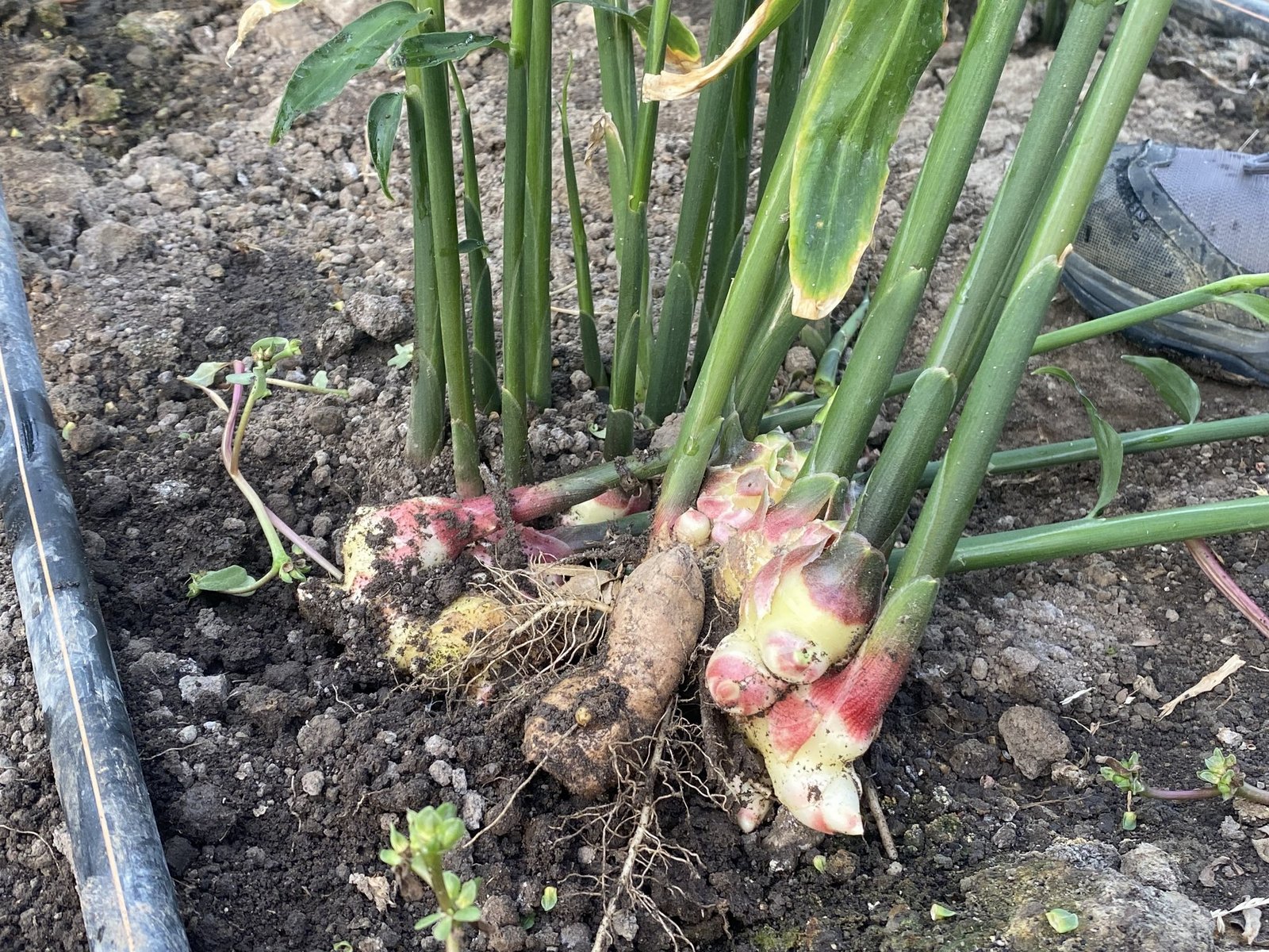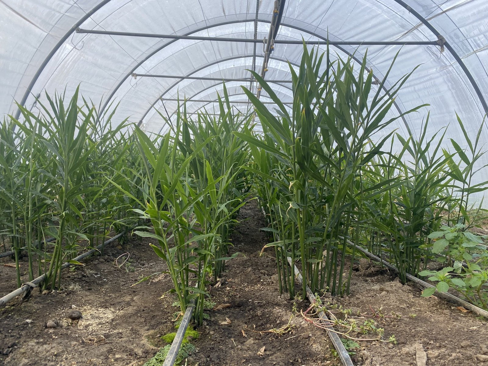 Die Rhizome kaufen sie auf dem Engrosmarkt in Zürich. Keine Ware aus China, sondern aus Peru, das sei der Grundsatz. In die chinesische Ware haben sie wenig Vertrauen. Die Wärme liebenden Ingwerwurzeln werden Ende April im Abstand von 50 cm in Reihen in die Erde gesteckt. Die Temperatur und Feuchtigkeit sind die entscheidenden Faktoren, wie lange es geht, bis die Pflanzen keimen.