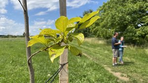 Die Pflanzung des Agroforsts erfolgte in Wallenbuch ausschliesslich von Hand. Dank dem Netzwerk der Solawi waren rund 50 freiwillige Helferinnen und Helfer beteiligt. Insgesamt sei es – die Arbeitszeit eingerechnet – eine Investition von rund 30'000 Franken gewesen, meint Valentin Birbaum. 25'000 konnte er über Beiträge finanzieren, sei es von Kanton und Gemeinde oder der Stiftungen Visio Permacultura und myclimate. Unterstützung gab es auch vom Fonds Landschaft Schweiz (FLS), der seinen «Fokus Agroforst 2022-23» auf dem Betrieb der Birbaums vor den Medien lancierte.